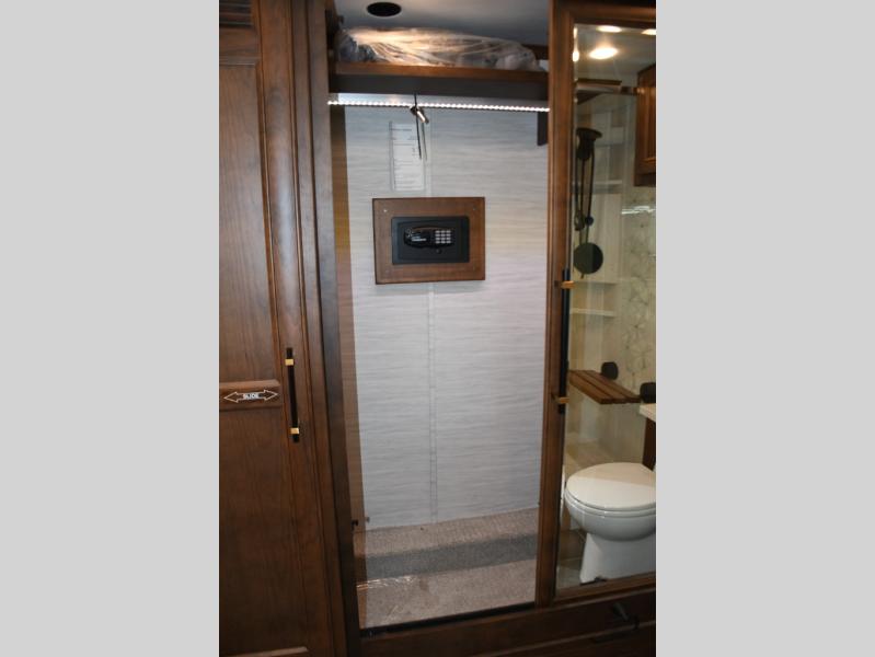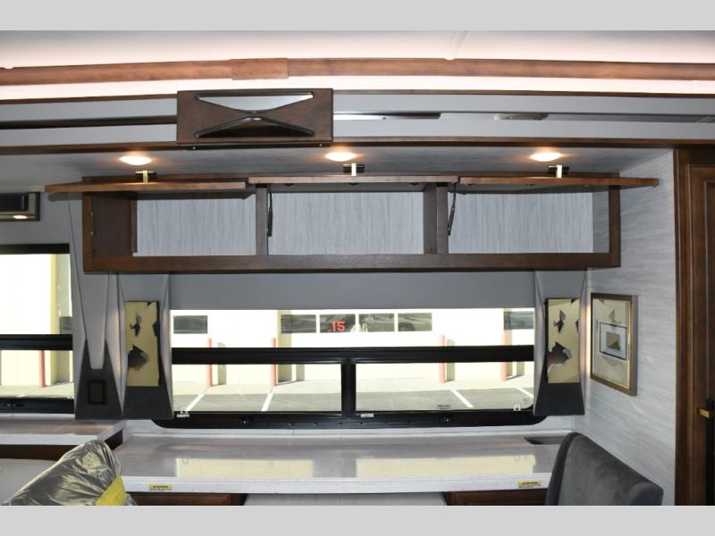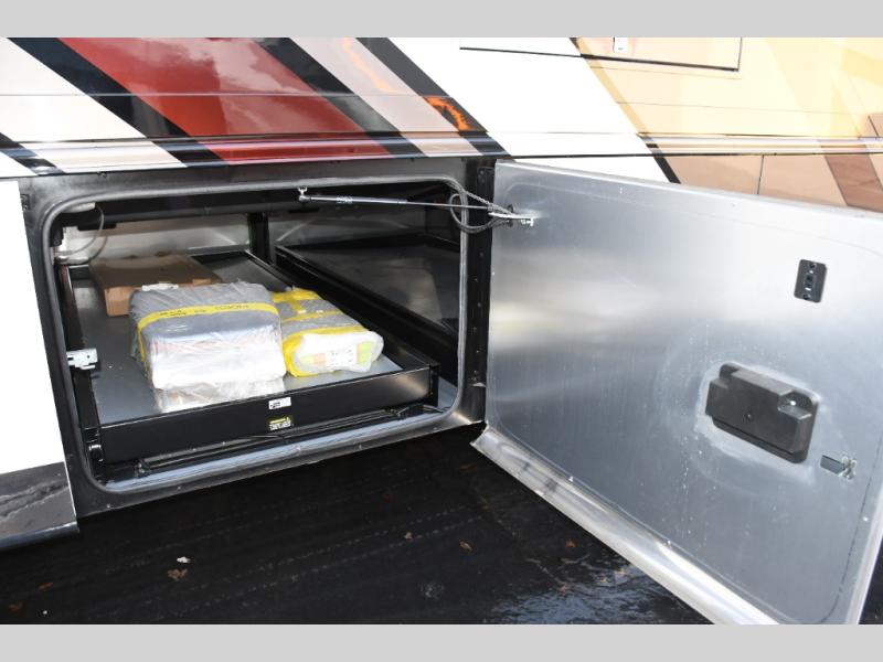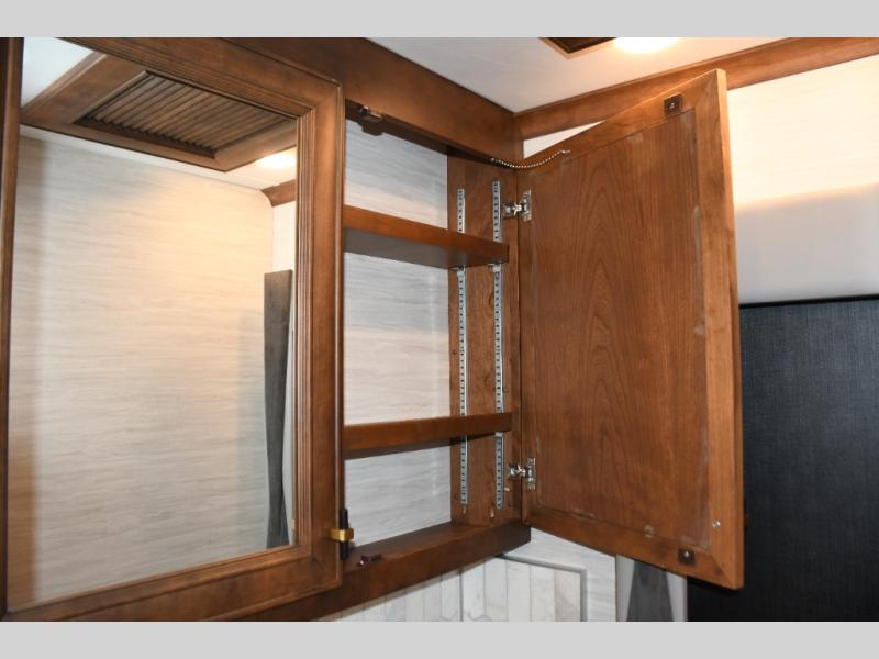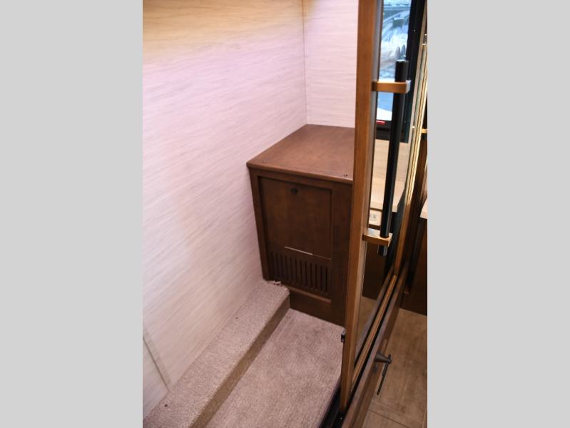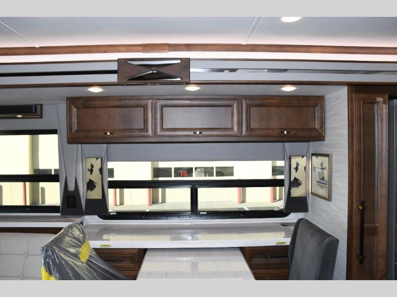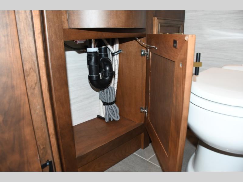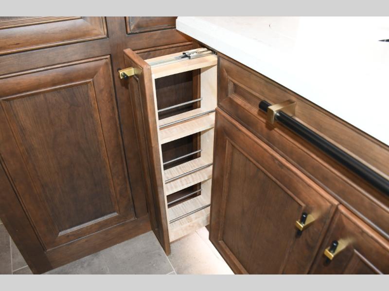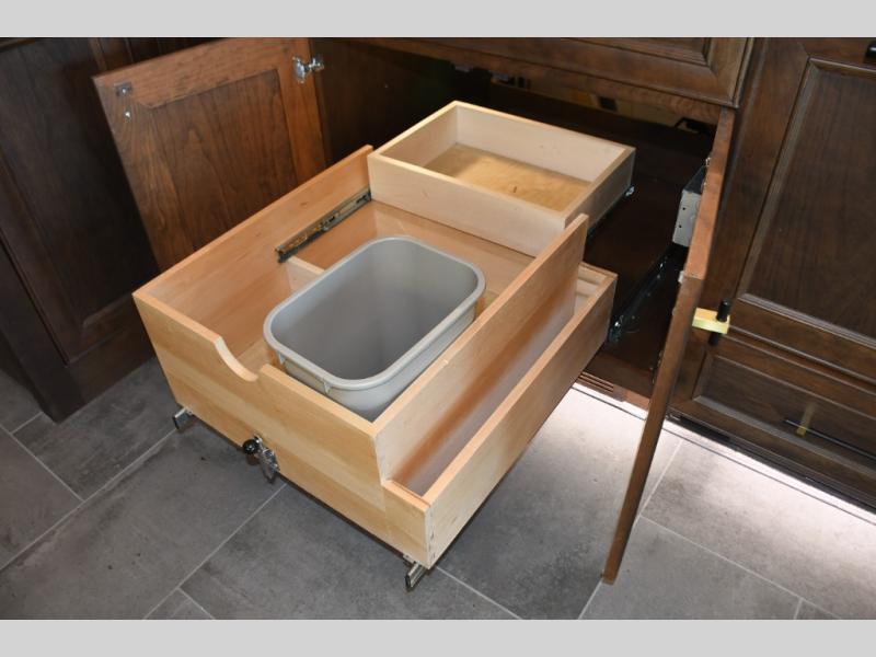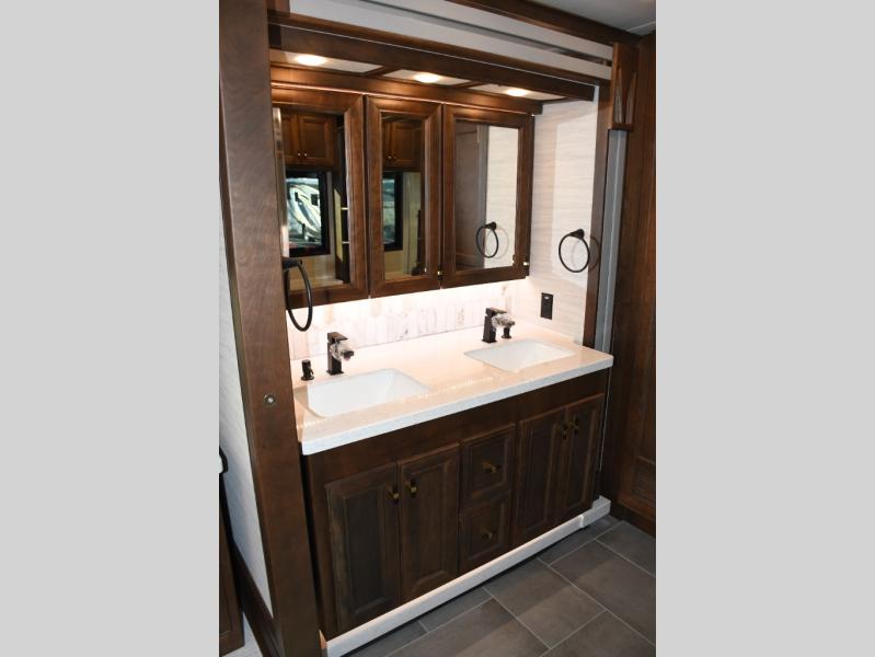 Now you can travel with more friends and family in this coach that includes a bath and a half, and additional sleeping space thanks to the two sofa beds. The master bedroom includes a king bed, 50" TV, plus dual nightstands for your belongings. Dual bath sinks in the full rear bath allow two people to freshen up at once, and a stacked washer and dryer to make wash day a breeze. And check out the kitchen with its residential refrigerator, pantry, stainless steel convection microwave, and drawer-type dishwasher! You will also appreciate the countertop extension for more prep space when it's time for dinner. The dinette with chairs provides a place to dine or get some work done, and one of the sofas includes an ottoman so you can kick your feet up.