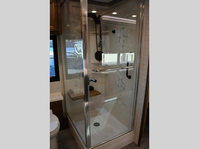 With any Allegro Bus Class A diesel coaches by Tiffin Motorhomes you will experience ultimate luxury, breakthrough technology, and unmatched power thanks to the 450 HP Cummins L9 engine. The captain's job is made easier than ever with the adaptive cruise control, the collision mitigation with forward warning and active braking, and the Valid instrument cluster display with integrated leveling controls. This hydronic heating and electronic appliance-equipped coach features two Girard roof awnings, an Onan 10.0 kW generator, and three 15,000 BTU A/C units to keep you comfortable all year long. You will also enjoy the handcrafted cabinetry, solid surface galley countertops, and Gold Heat dual zones heated tile floor to name a few luxuries! New and exciting features a Mobileye lane departure warning system, new Generation 15 exterior paint options, new interior decor options, and more!