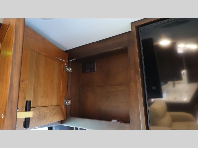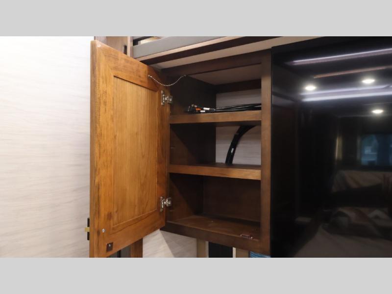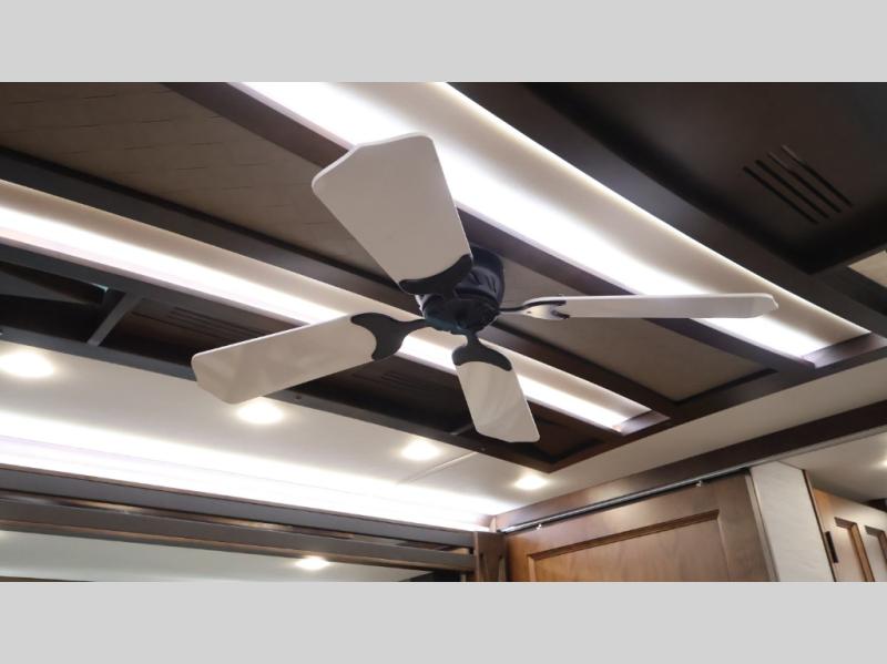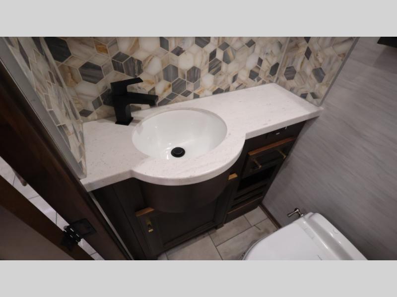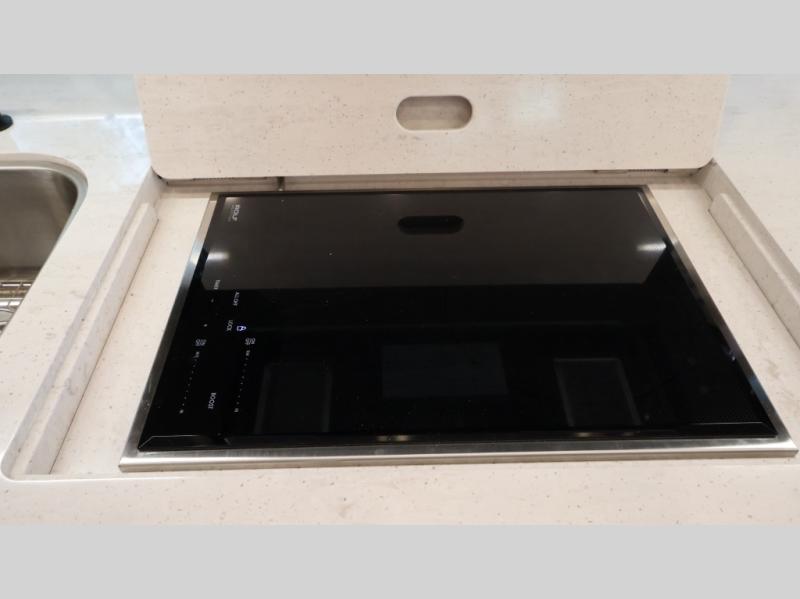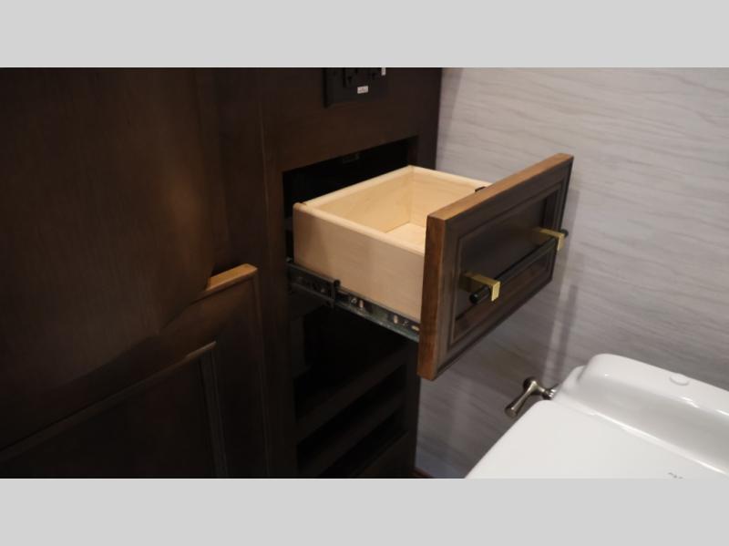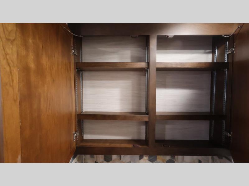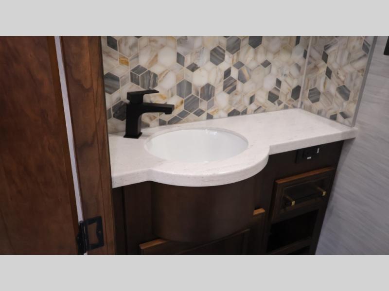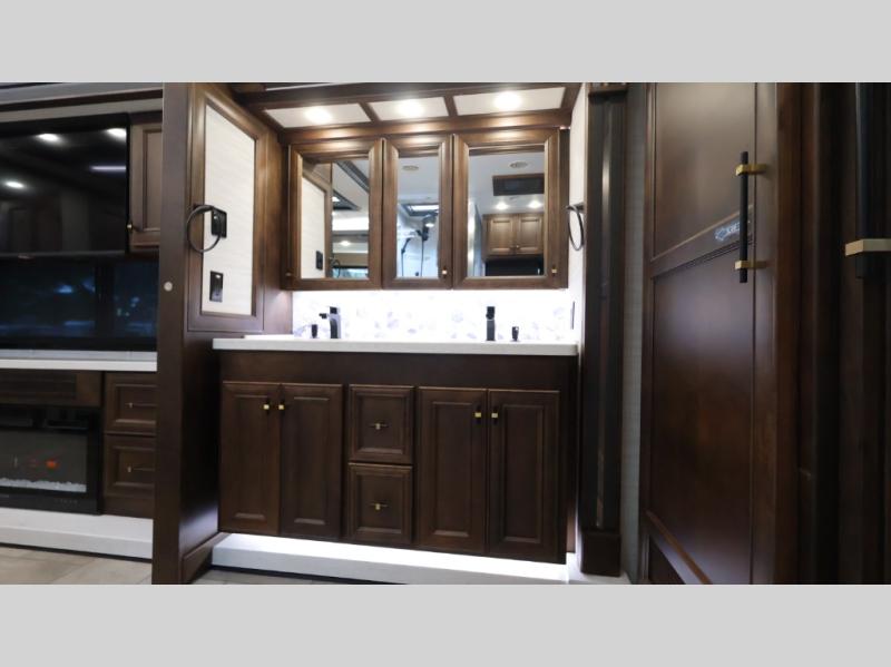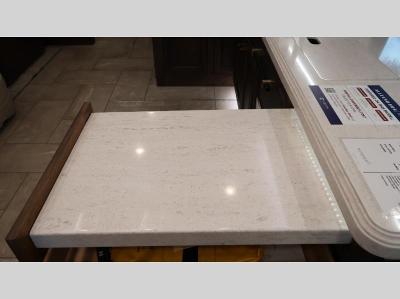 Now you can travel with more friends and family in this coach that includes a bath and a half, and additional sleeping space thanks to the two sofa beds. The master bedroom includes a king bed, 50" TV, plus dual nightstands for your belongings. Dual bath sinks in the full rear bath allow two people to freshen up at once, and a stacked washer and dryer to make wash day a breeze. And check out the kitchen with its residential refrigerator, pantry, stainless steel convection microwave, and drawer-type dishwasher! You will also appreciate the countertop extension for more prep space when it's time for dinner. The dinette with chairs provides a place to dine or get some work done, and one of the sofas includes an ottoman so you can kick your feet up.