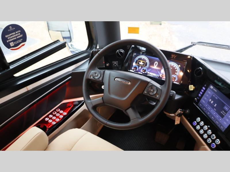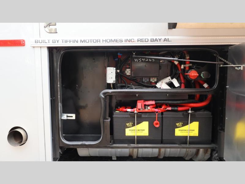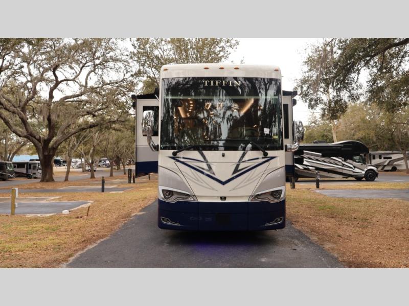 With any Allegro Bus Class A diesel coaches by Tiffin Motorhomes you will experience ultimate luxury, breakthrough technology, and unmatched power thanks to the 450 HP Cummins L9 engine. The captain's job is made easier than ever with the adaptive cruise control, the collision mitigation with forward warning and active braking, and the Valid instrument cluster display with integrated leveling controls. This hydronic heating and electronic appliance-equipped coach features two Girard roof awnings, an Onan 10.0 kW generator, and three 15,000 BTU A/C units to keep you comfortable all year long. You will also enjoy the handcrafted cabinetry, solid surface galley countertops, and Gold Heat dual zones heated tile floor to name a few luxuries! New and exciting features a Mobileye lane departure warning system, new Generation 15 exterior paint options, new interior decor options, and more!
