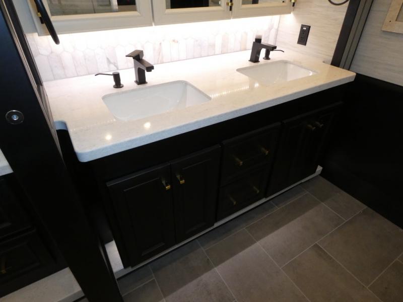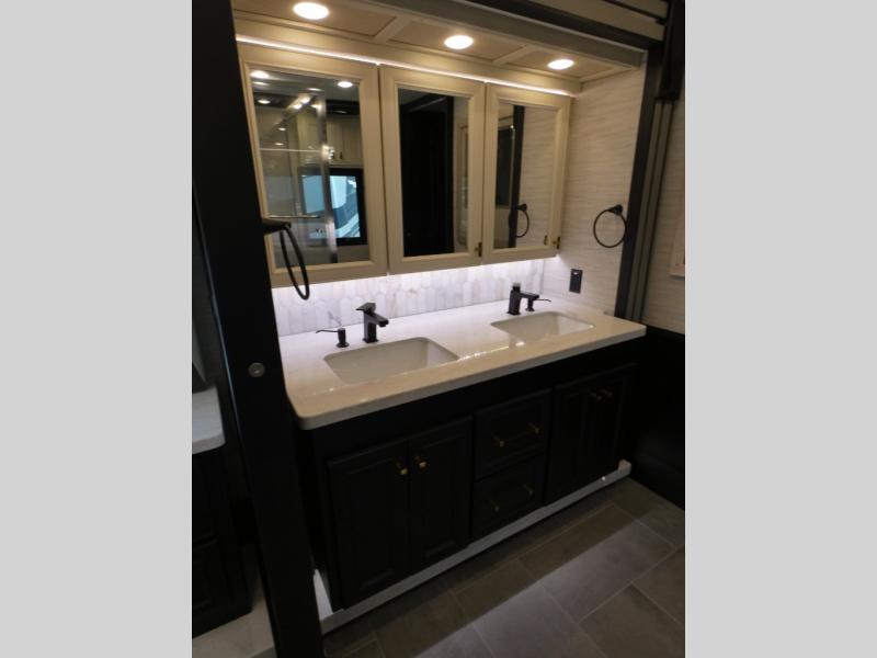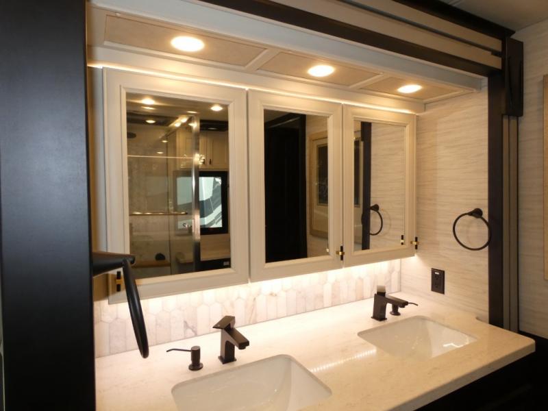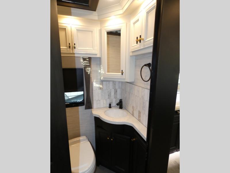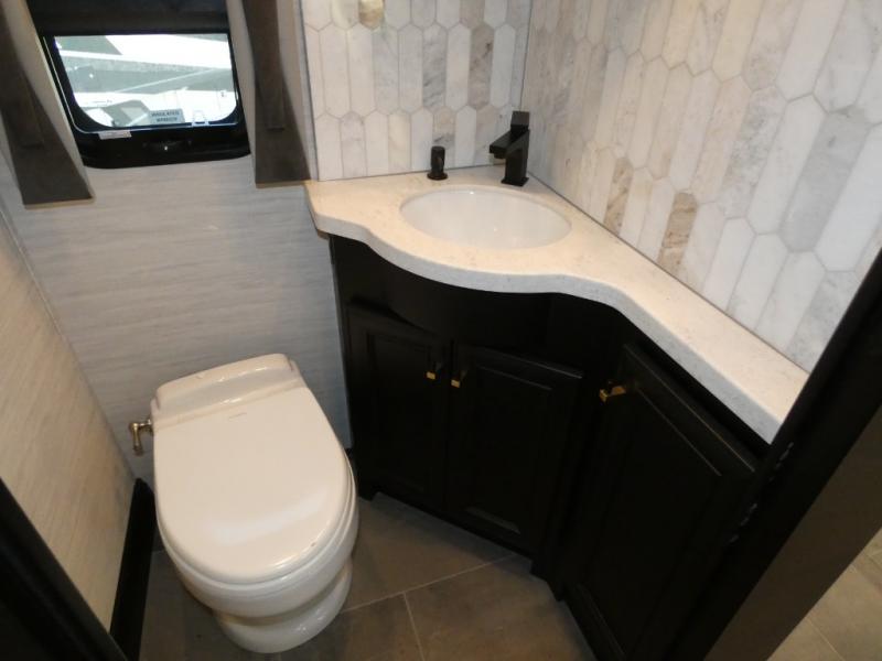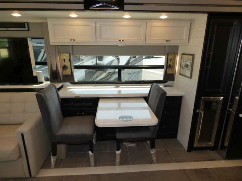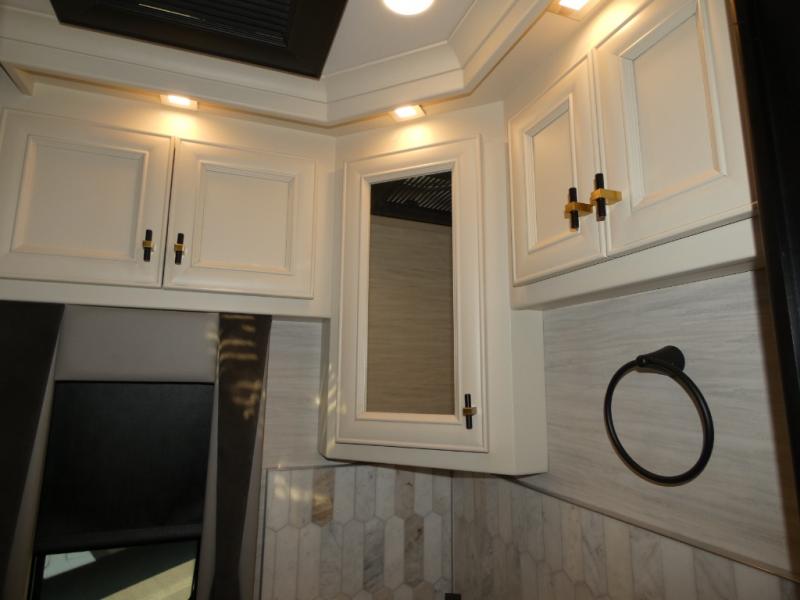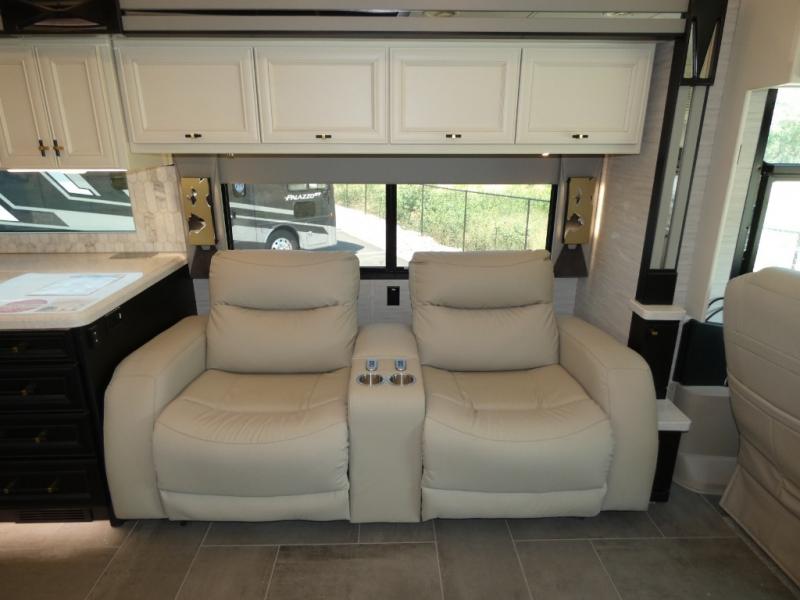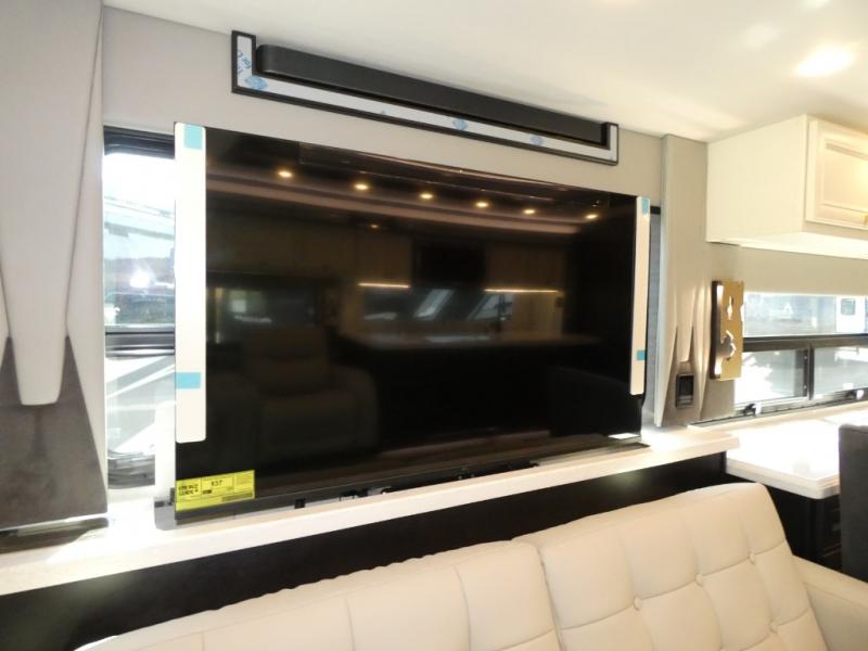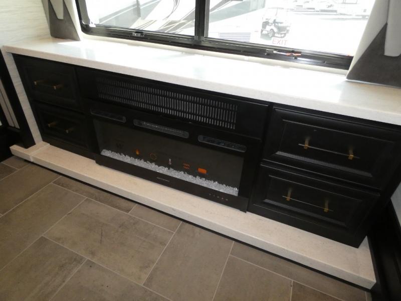 Fours slides, a bath and a half, plus sleeping space for guests make this coach family friendly. There is a sofa bed in the main living area, plus a lift TV for your favorite shows. The chef of your group can cook meals on the two burner induction cooktop or in the stainless steel convection microwave with an air fryer, and there is a drawer-type dishwasher that will make clean up easier than ever. This model also includes a residential refrigerator plus pull-out storage and a stack of drawers for snacks galore. Enjoy a great night's rest on the king bed after traveling all day, and the full rear bath will allow you to clean up in luxury. There is even a floor-to-ceiling closet for maximum storage and a stacked washer and dryer; how convenient!