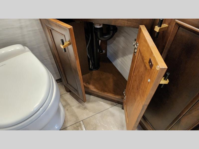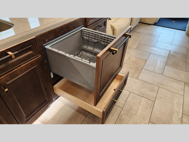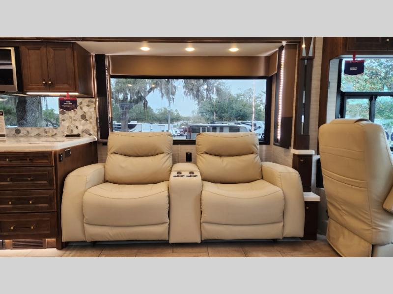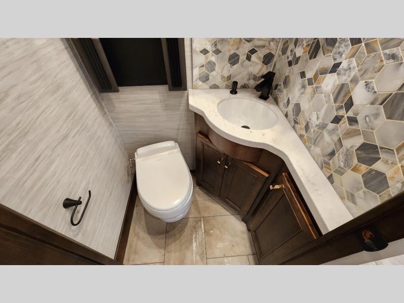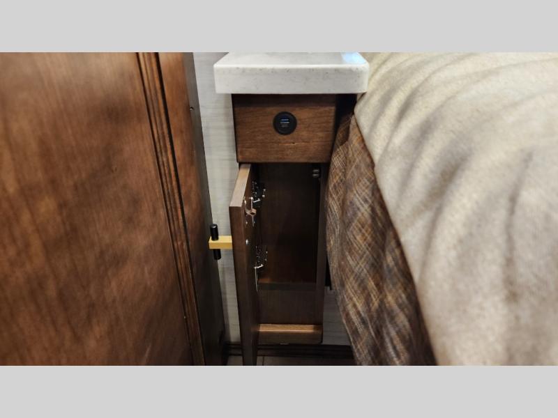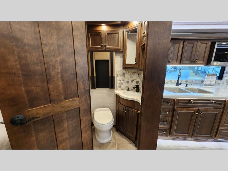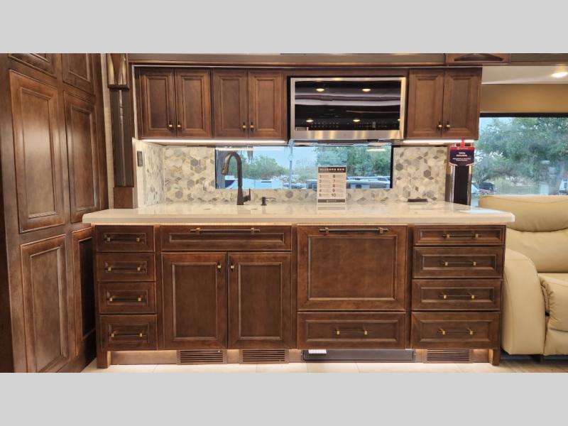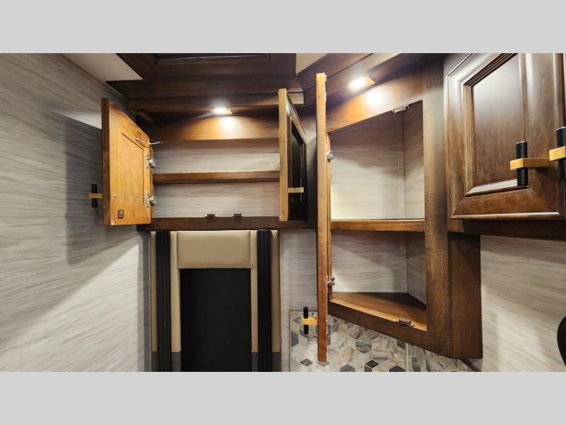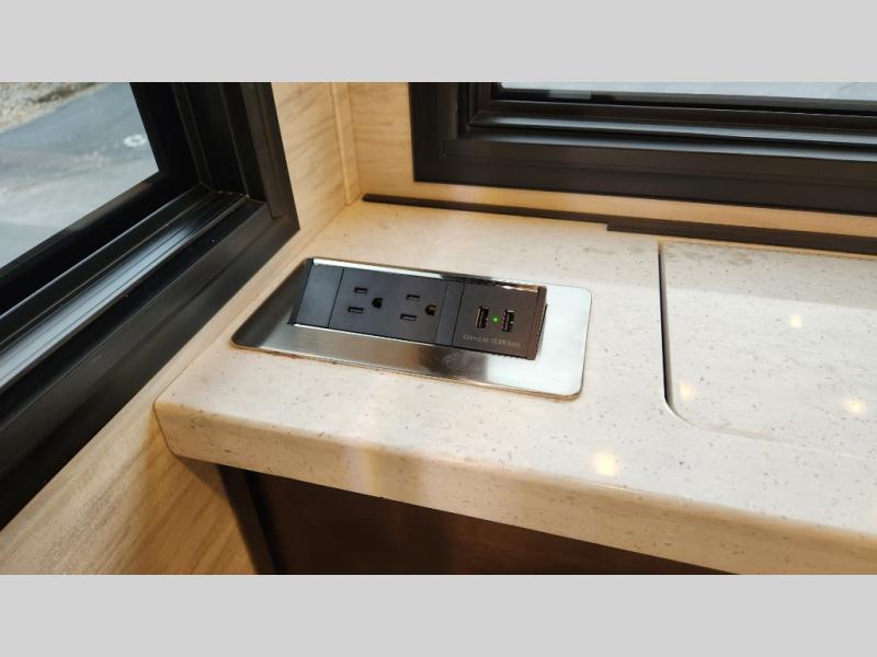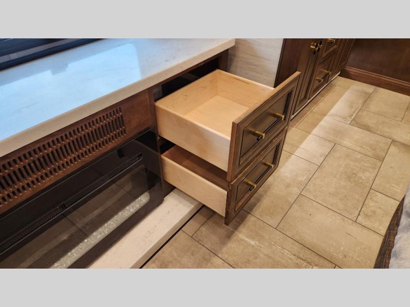 The drive is just as impressive thanks to the FCCC XCS 340HP 252WB chassis with TPM, delivering dependable power, stability, and peace of mind on long hauls. Support systems like electronic stability/traction control, hydraulic jacks, tire pressure sensing, and power driver/passenger seats with footrest keep every journey comfortable and confident. Tech features including WiFi booster, satellite prep, satellite internet prep, in-dash navigation, solar panel prep, and the convenience of a telescoping ladder and exterior TV expand your experience on and off the road. A power drop-down bunk adds flexible sleeping space, and the 8.0 generator with 2000-watt inverter ensures reliable power wherever the adventure takes you.