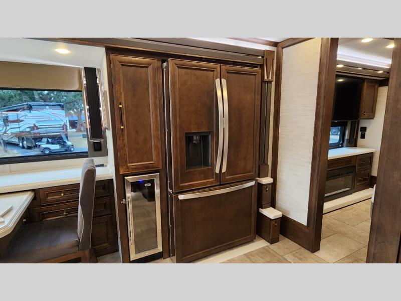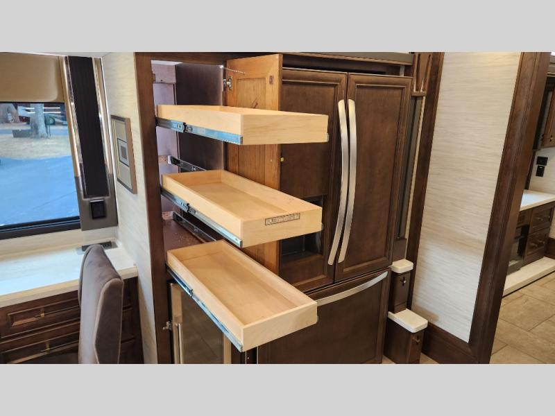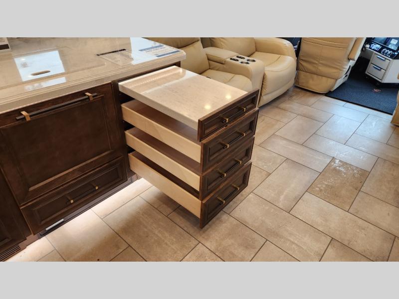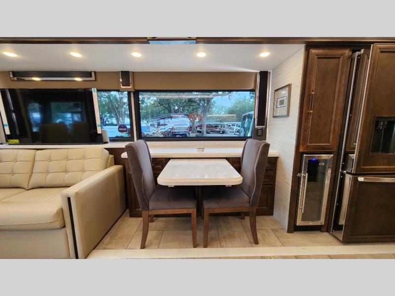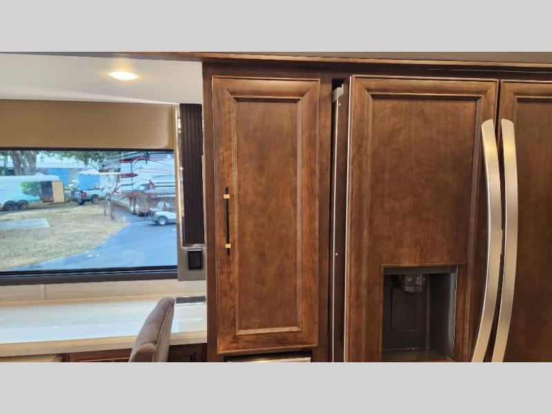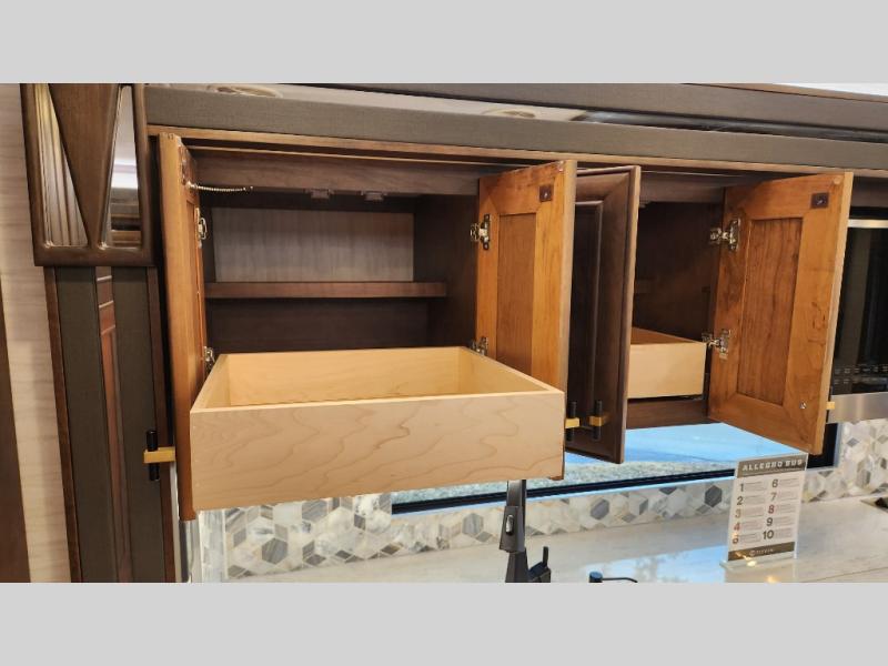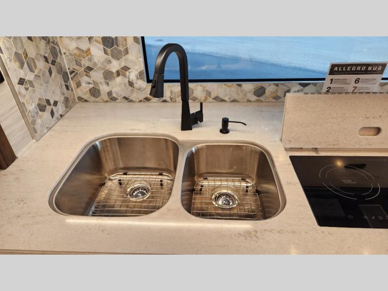 Step into the 2026 Allegro Bus 45 OPP and experience a high-end Class A coach crafted for travelers who expect more from every mile. Four massive slides open up a world of space, while the Sandstone cabinets, Desert Retreat interior, Dune tile flooring, and Granite G2 full-body paint in Frost bring elegant, residential charm to every corner. The main living area centers around comfort with the Air Coil sofa, fireplace, dinette with chairs, lift TV, and the kind of layout that makes relaxing or entertaining effortless. A residential refrigerator, cooktop/convection microwave, and premium galley design make cooking enjoyable, while the stacked washer/dryer, central vacuum, and Truma water heater keep everyday living smooth and stress-free.