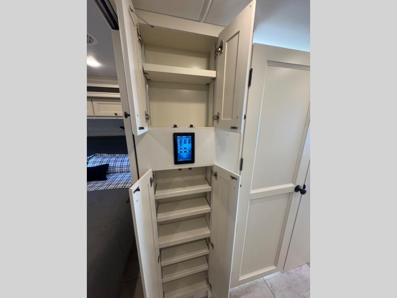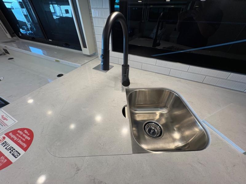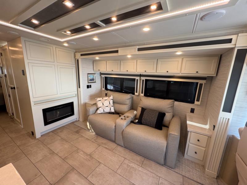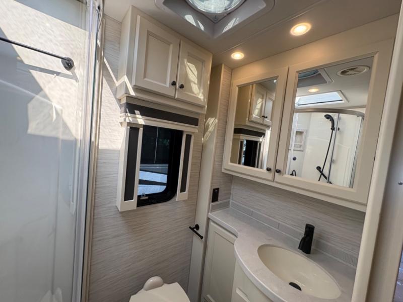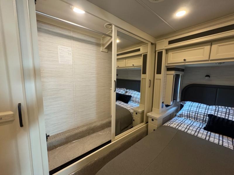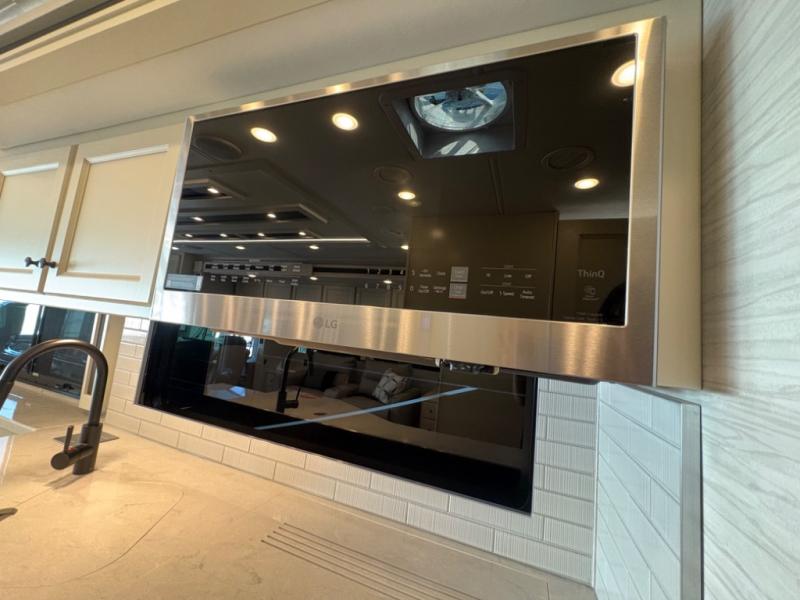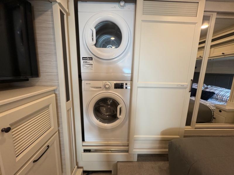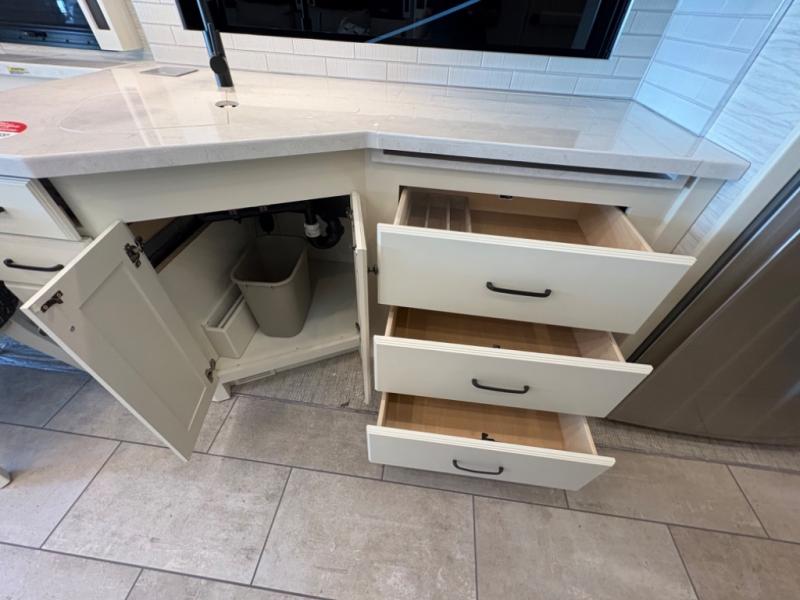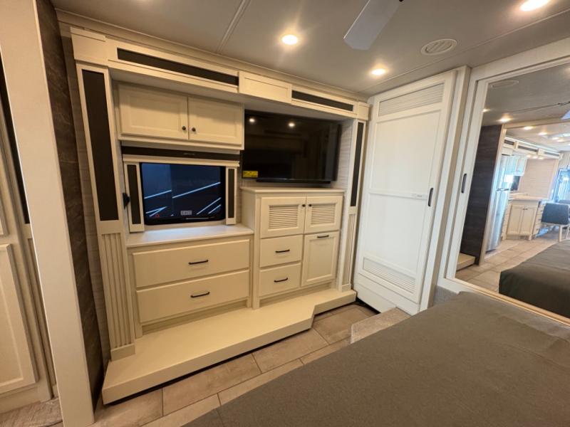 There are many, many reasons you'll instantly fall in love with this Allegro RED Class A diesel motorhome! You have three TVs including an exterior one to keep everyone entertained, and the kitchen is filled with tons of tools to create delicious meals, like a 1.7 cu. ft. smart convection microwave with air fry, 20 cu. ft. stainless steel residential refrigerator with top freezer, pantry, double-bowl sink, and panoramic galley window. You'll also be quite impressed with the full bathroom that has a one-piece fiberglass shower, roof vent fan, solid-surface vanity top, and a skylight and LED light in the shower. If you need more sleeping space in addition to the 72" x 80" king bed, air coil sofa bed, a booth dinette sleeper, you could switch out for three different seating choices, including an optional super sofa or U-shaped dinette!