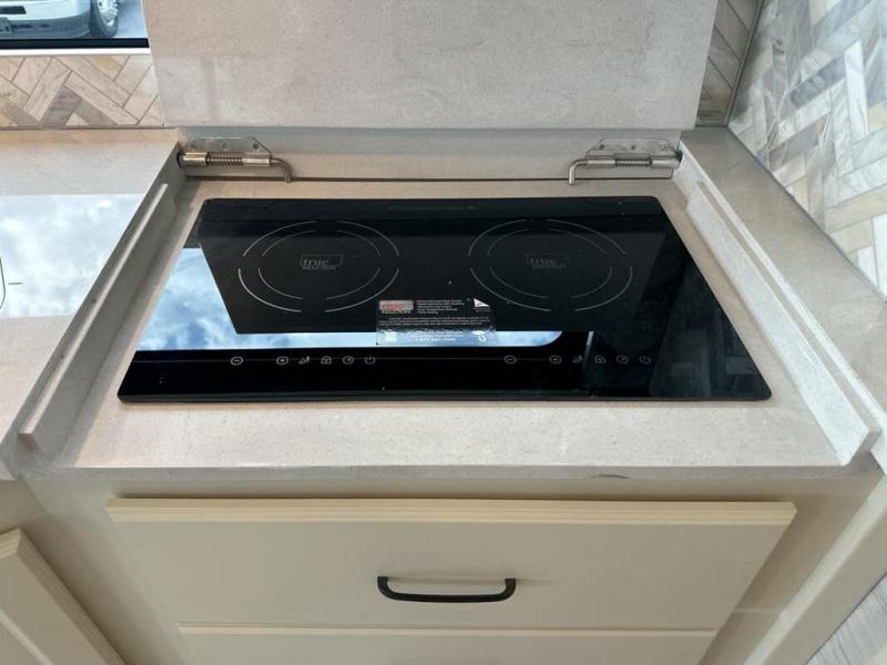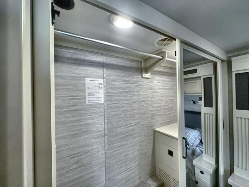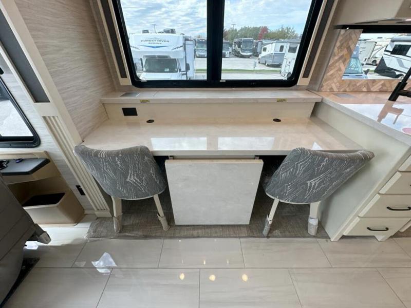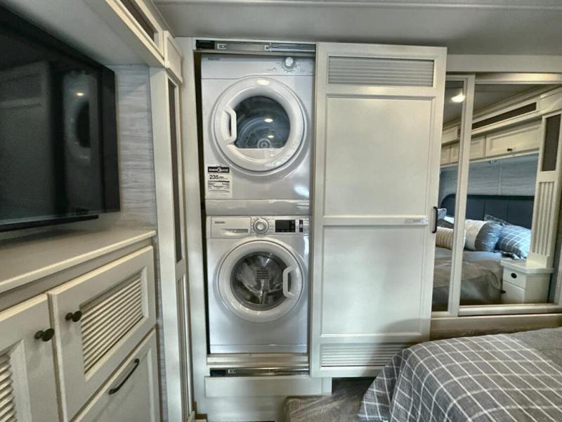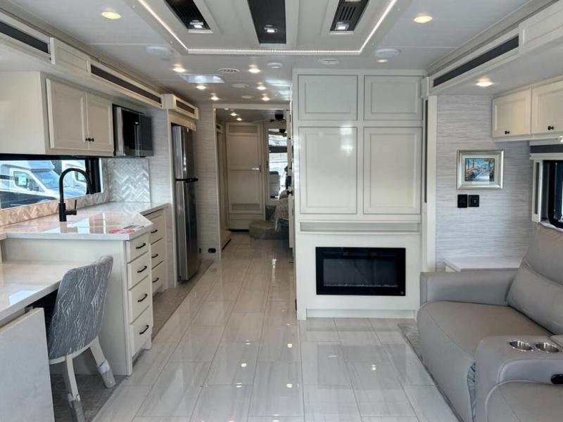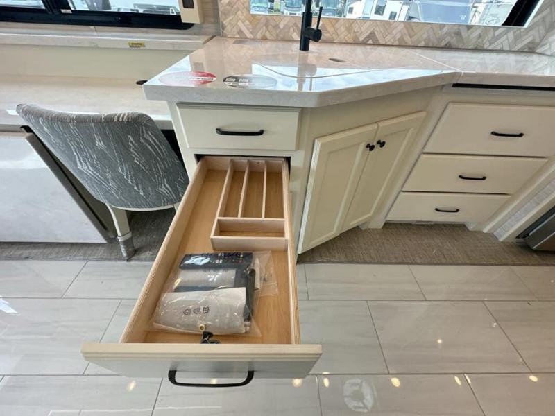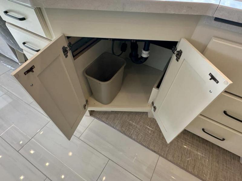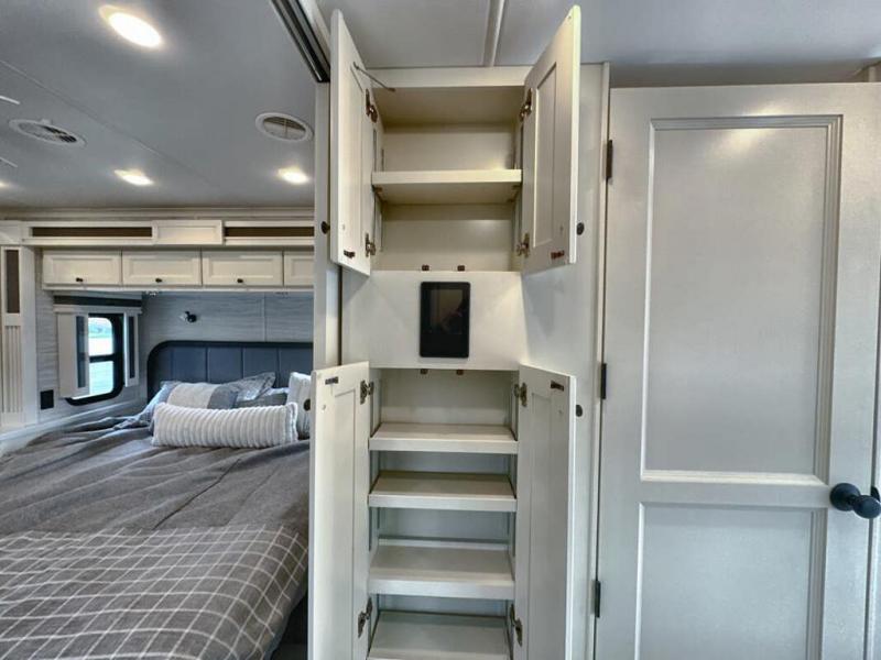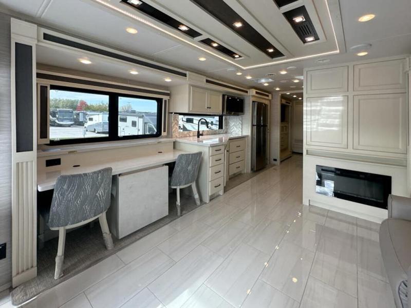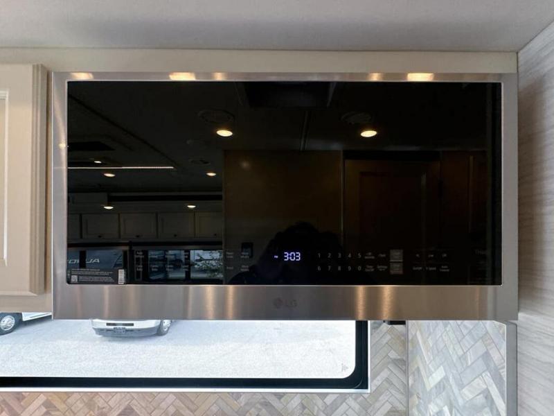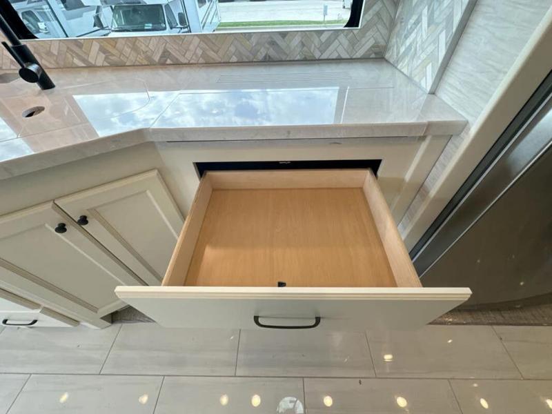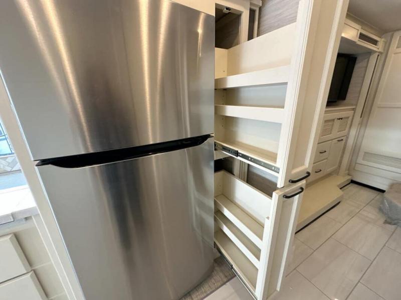 There are many, many reasons you'll instantly fall in love with this Allegro RED Class A diesel motorhome! You have three TVs including an exterior one to keep everyone entertained, and the kitchen is filled with tons of tools to create delicious meals, like a 1.7 cu. ft. smart convection microwave with air fry, 20 cu. ft. stainless steel residential refrigerator with top freezer, pantry, double-bowl sink, and panoramic galley window. You'll also be quite impressed with the full bathroom that has a one-piece fiberglass shower, roof vent fan, solid-surface vanity top, and a skylight and LED light in the shower. If you need more sleeping space in addition to the 72" x 80" king bed, air coil sofa bed, a booth dinette sleeper, you could switch out for three different seating choices, including an optional super sofa or U-shaped dinette!