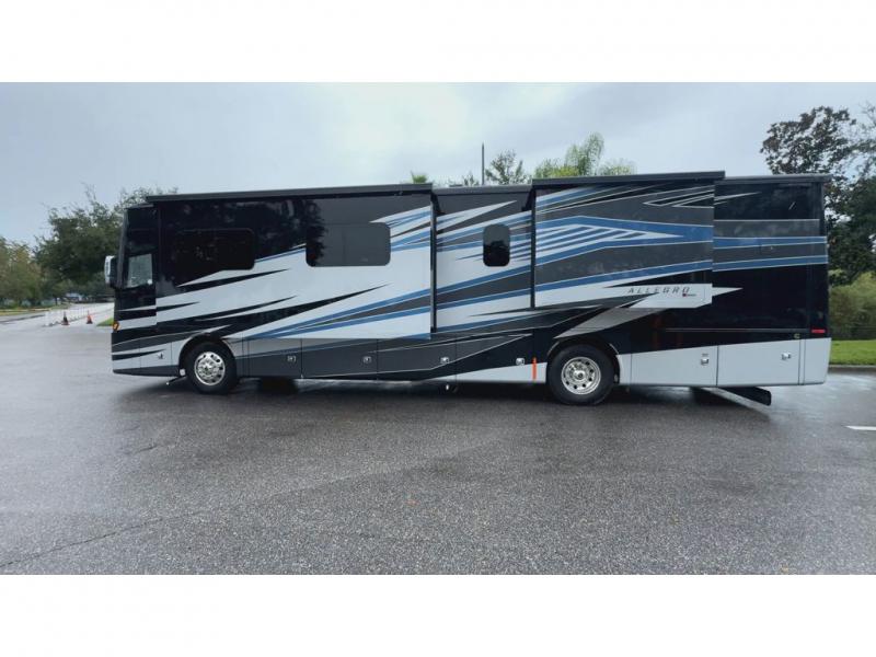 If you want the top of the line, the most luxurious, and the highest standard, the Tiffin Motorhomes Allegro RED Class A diesel motorhome is created for you! You will have V-Ride suspension, full air brakes, electronic stability control, and hydraulic automatic leveling jacks as some of the chassis features, and there are many electrical features that will catch your eye, like the Aqua View Showermiser, satellite hook-up, and Spyder multiplex controls. And that is only a fraction of the many more features found on the Allegro RED. While you're driving, you'll have a color back-up camera to help you maneuver into parking spots, and you have the ability to add an optional central vacuum, stacked washer/dryer, and Gold Heat heated tile floor, just to name a few of the many options. You will also love the new decor options, including floor tiles and dinette/living furniture, plus there are new Lifestyle Leather power captain's seats for added comfort and style!