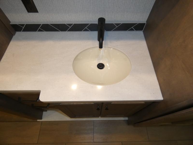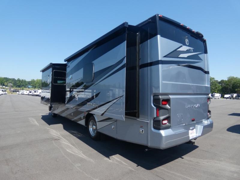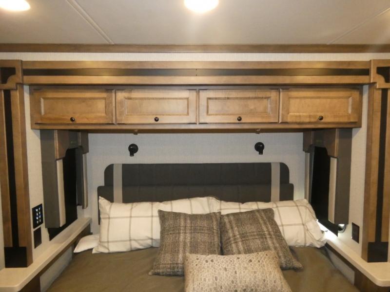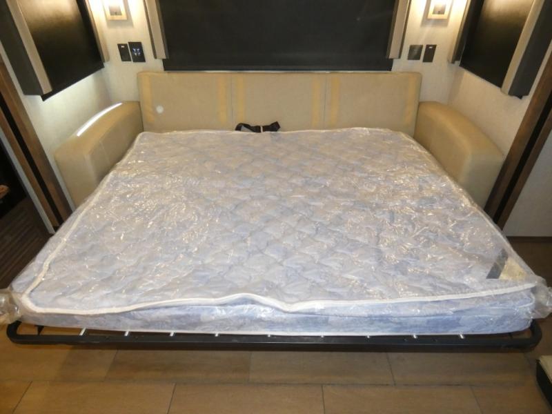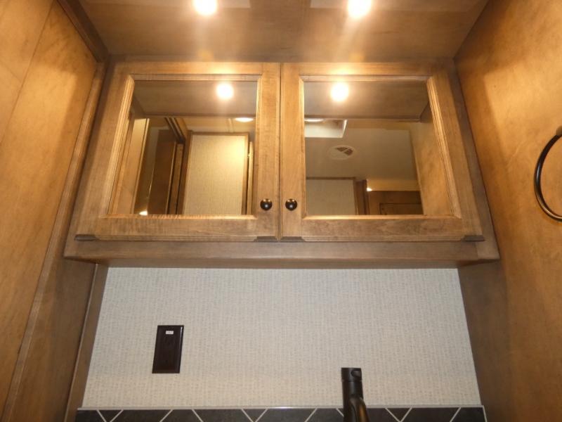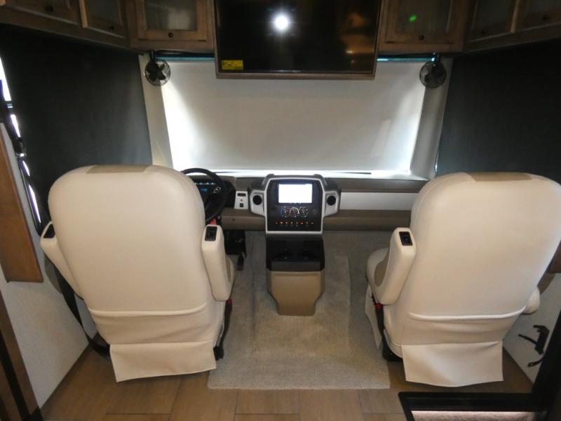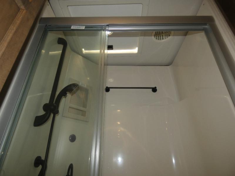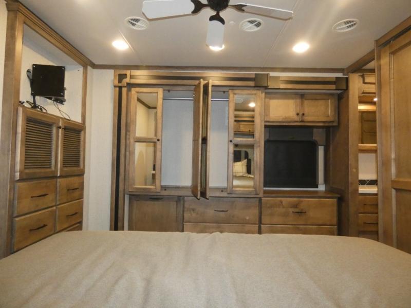 There are many standard luxurious features you will love about this motorhome! The queen bed slide in the rear private bedroom offers a comfortable place to sleep, as well as the flip and fold sofa bed in the living area. You will love the dinette bar with a lift TV, a flip-up countertop, and two chairs that will make this the perfect place to get some work done while you're on the road. The kitchen includes everything you need to prepare meals each day, including a 1.7 cu. ft. smart convection microwave with an air fryer, a three burner liquid propane cooktop, and a 23 cu. ft. stainless steel residential refrigerator with French doors and a bottom freezer. Head to the rear master bedroom with a queen bed slide out, a large wardrobe, a cabinet with a TV and drawers below, plus a private entrance into the dual entry bath!