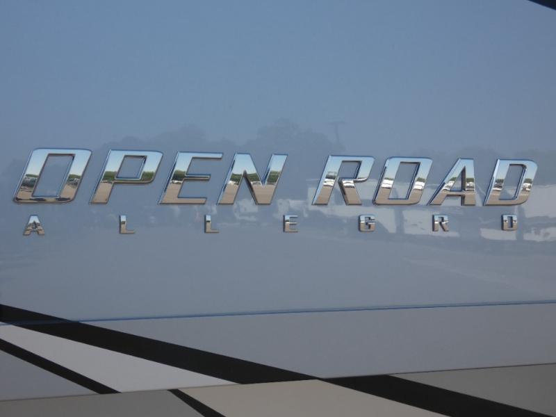 Every one of these Tiffin Motorhomes Open Road Allegro Class A gas motorhomes are ready to go when ever you are! A Ford 7.3L V8 engine powers these units and a durable, yet lightweight, tubular aluminum wall skeleton holds them together. They are beautifully designed with handcrafted cabinetry and a panoramic kitchen galley window for breathtaking views. A couple electronic features you will appreciate include an exterior TV with a soundbar and a Spyder multiplex system, plus there are two 13.5k BUT AC units to keep you cool on those hot summer days. The color back-up camera and side-view cameras will make parking easier than ever, and you'll appreciate hydraulic leveling jacks with a control panel for hassle-free set up.