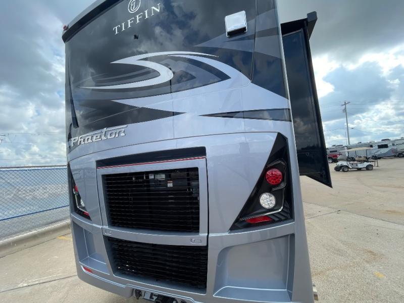 Each one of these Tiffin Motorhomes Phaeton Class A diesel motorhomes offer high-end elegance at every turn! A PowerGlide XC raised rail rear engine diesel chassis will give you a smooth ride for every mile, and each coach comes with a Cummins L9 450 HP engine to power your journeys. There is a 10.0 kW Onan Quiet Diesel generator, three 15k BTU A/C units, and a Firefly integrations Mira module to keep you connected wherever you go. Outside, you'll appreciate the custom rock guard to protect your unit, along with full-body paint with four layers of clear coat and high-performance protection film on the front cap and select areas. A Girard power awning with LED lights also comes standard plus a fiberglass reinforced plastic basement floor, an exterior TV, and more. If you're traveling with pets, the optional Pet Perks Package can be added that includes a pet dish holder and a leash holder at the entrance door for added convenience!