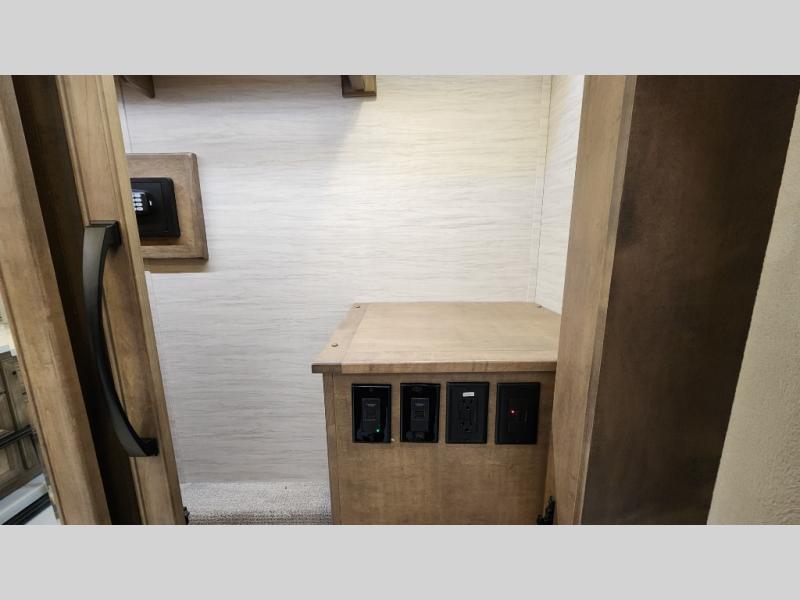 • Dual exterior slide trays and bedroom safe