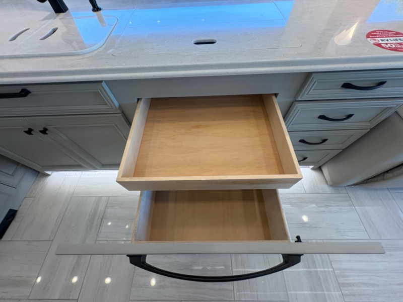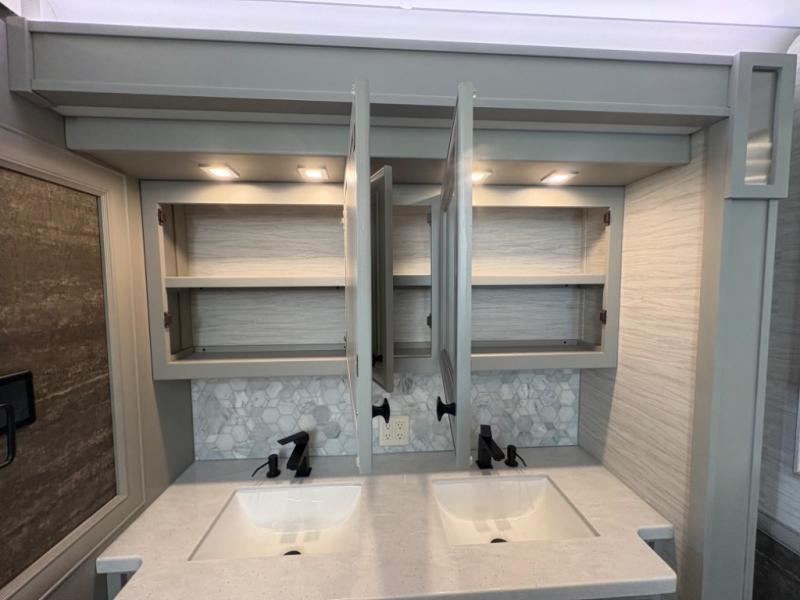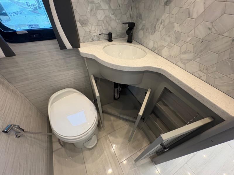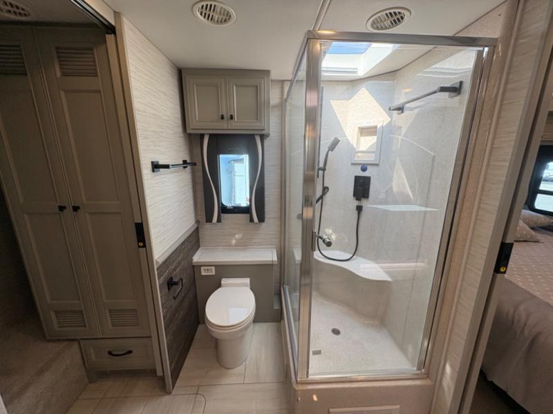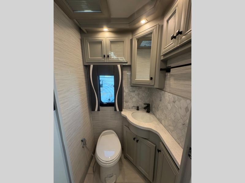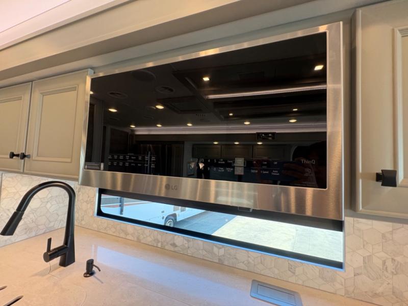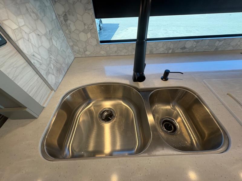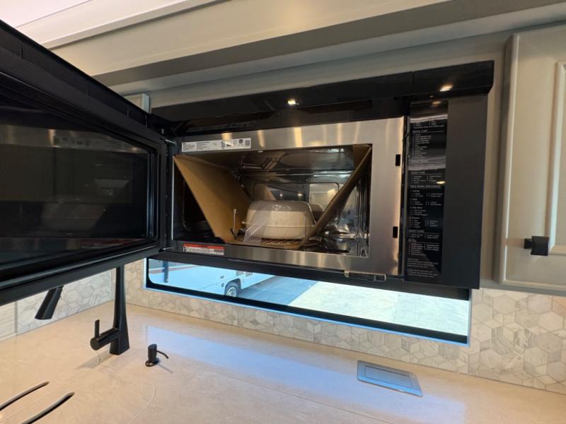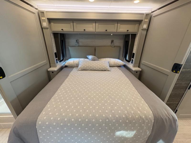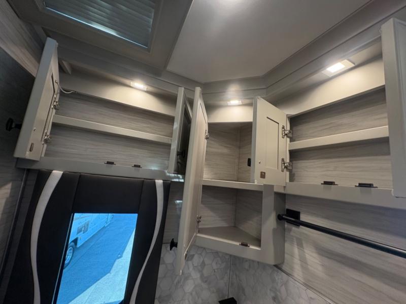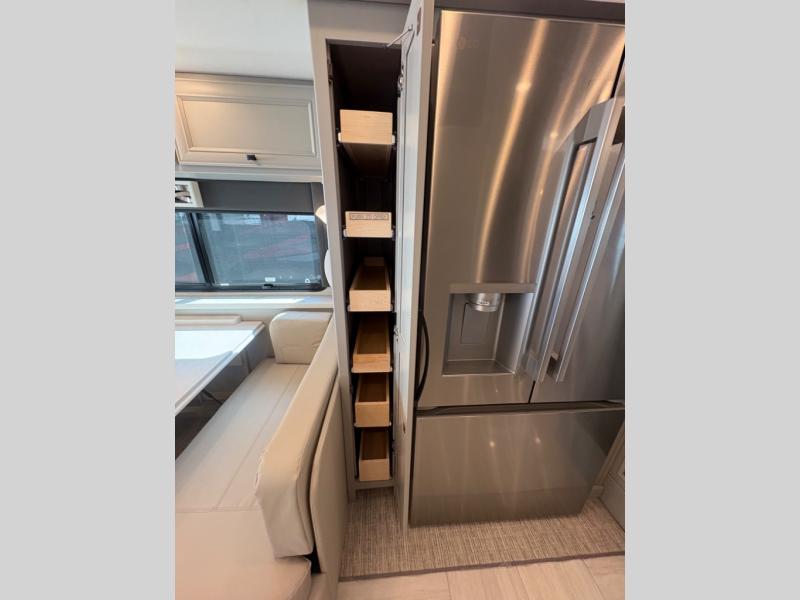 You won't want to travel any other way once you step inside this Phaeton motorhome! The full rear bathroom is decked out in convenient features like the large closet that has a cabinet with drawers below, an area prepped to add an optional washer and dryer, plus a shower with a seat and a dual sink vanity with a tri-view mirror. The kitchen has a stainless steel refrigerator to keep your perishables fresh, a countertop extension for more prepping and storage space, and the ability to add an optional drawer-type dishwasher for easy clean up. You can enjoy your meals at the booth dinette-sleeper then relax on either the air coil sofa bed or DE sofa bed with a lift TV above it. A few options you might want to add are the optional outdoor grill, the drop-down front bunk, the dinette with chairs, and more.