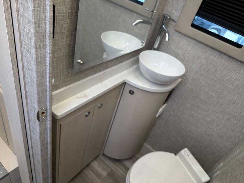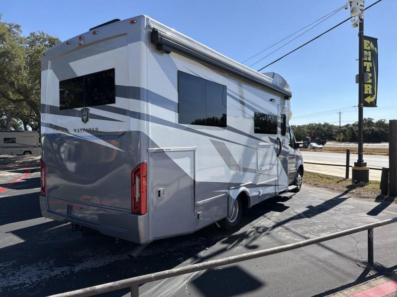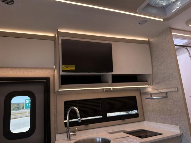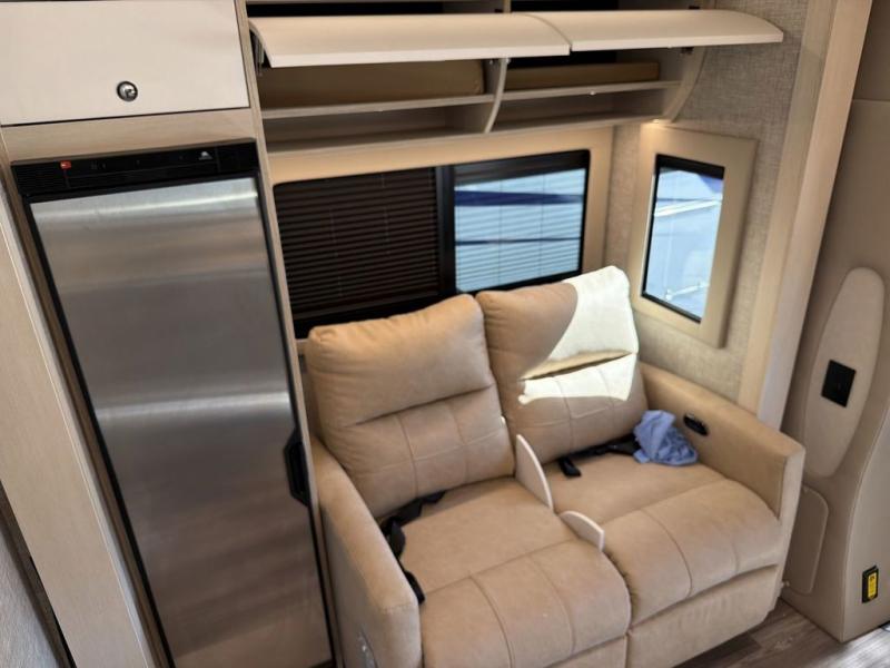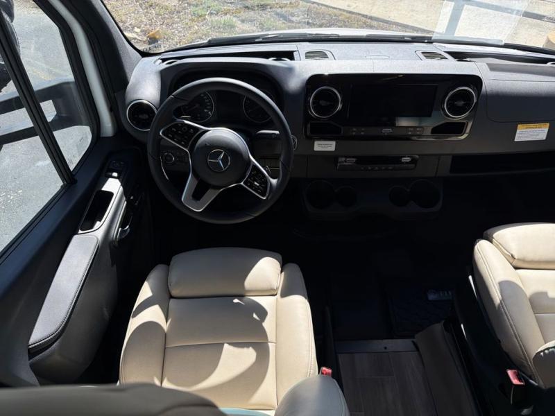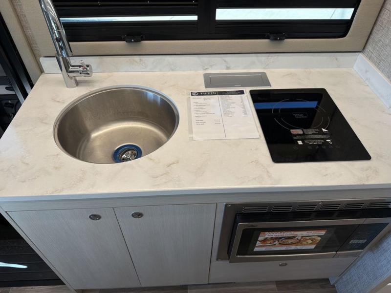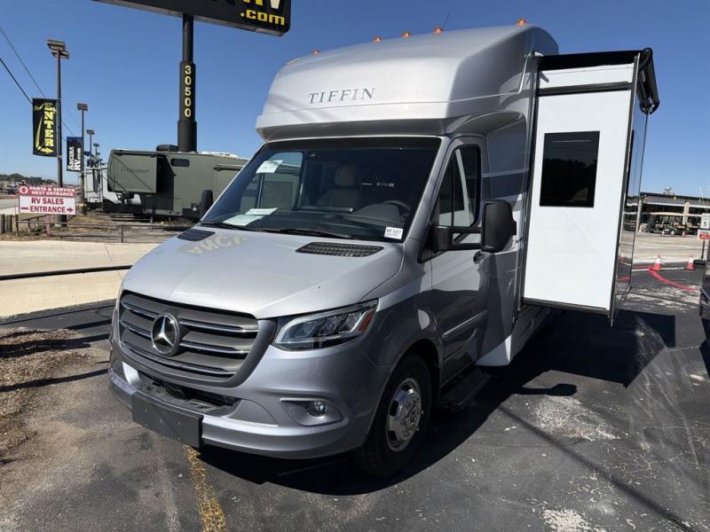 With any Wayfarer Class C diesel coach by Tiffin Motorhomes you will enjoy luxury features both inside and out. There are one-piece molded gel-coat fiberglass front and rear caps plus full-body paint and two layers of clear coat for added protection. The Mercedes-Benz 3500XD dual wheel cutaway chassis provides a strong foundation, and the 2.0L V4 turbo diesel high output 208 HP diesel engine with 332 lb-ft torque will keep you going adventure after adventure! You will love the drive just as much as the destination with adjustable captain's seats that are also heated, intelligent navigation, and a Mercedes-Benz MBUX multimedia system with a 10.25" touchscreen. Wherever you decide to roam, you will be met with interior comforts that include handcrafted overhead cabinetry, solar and privacy shades, solid surface galley countertops and task lighting, and a wardrobe in the bedroom to keep your space tidy.