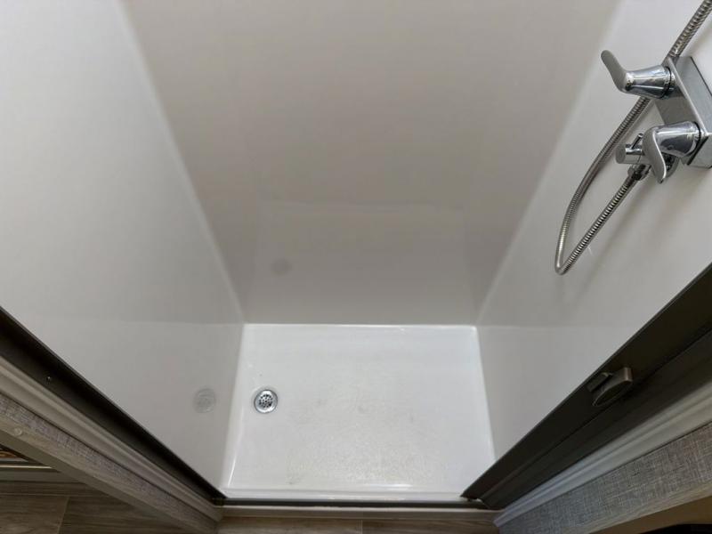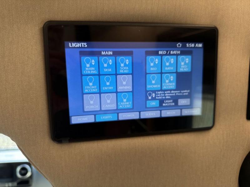 Head out to explore whenever the mood hits you! This coach provides a comfortable and luxurious way to travel from the cab features to the sleeping accommodations. The driver and passenger will have a tray for smartphones with charging ports, heated/electric adjustable mirrors, heated seats, and they might like to add the side-view cameras option. You can dine at the tri-fold sofa after whipping up a meal using the kitchen appliances including a stainless steel convection microwave. The split bathroom includes a shower along one side and a private toilet and sink on the opposite so two people can get ready at the same time. At night, fall quickly to sleep on the rear twin beds which allow you easy access to the bathroom, plus the nightstand will come in handy to place your cellphones and drinks. You will also find overhead cabinets for storage, and you might like to add an optional TV to watch.