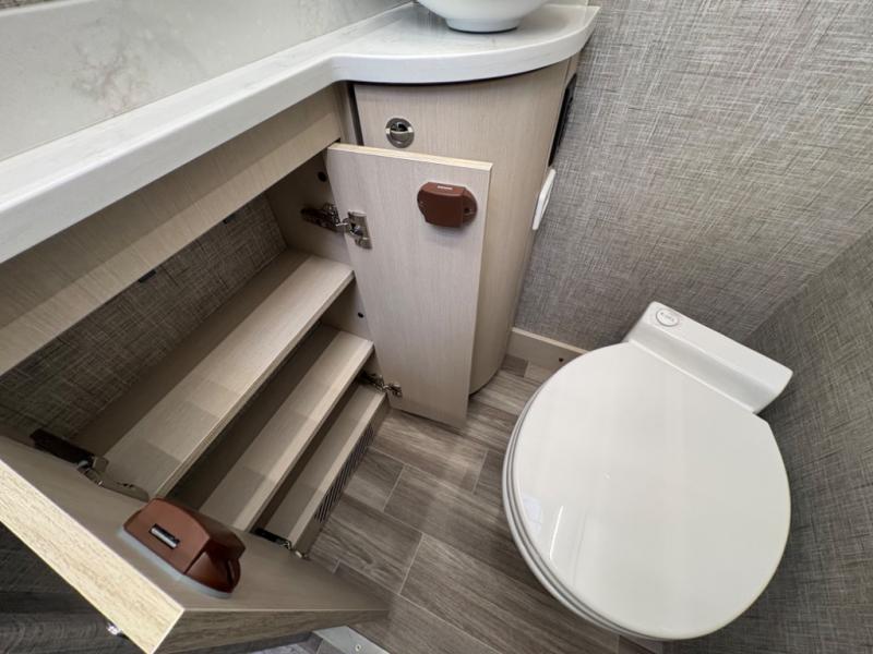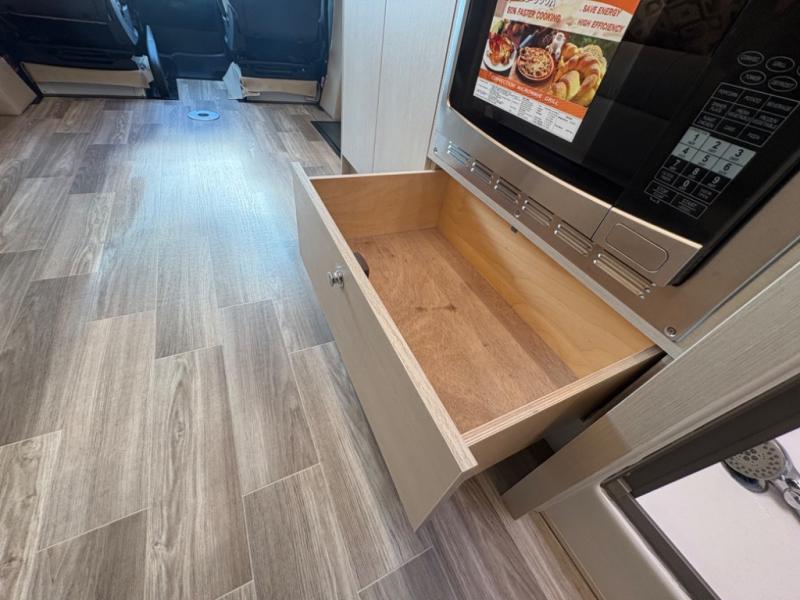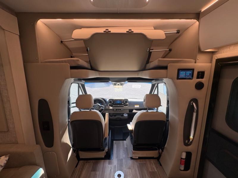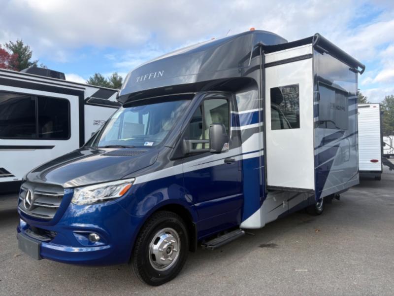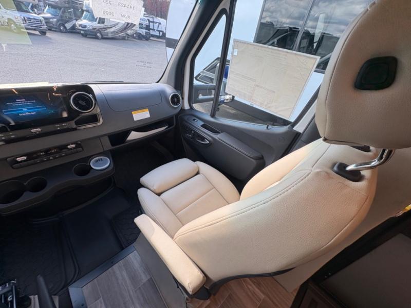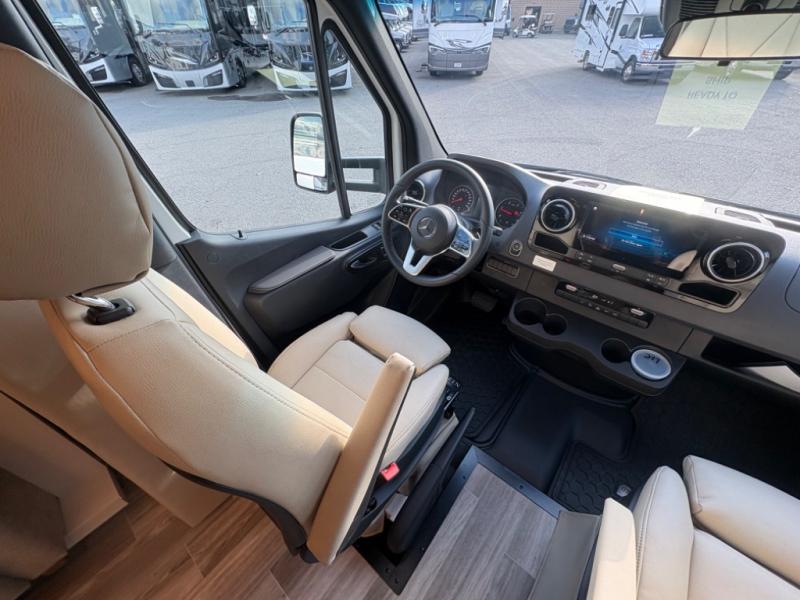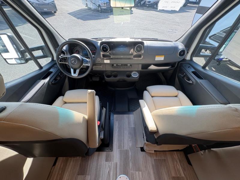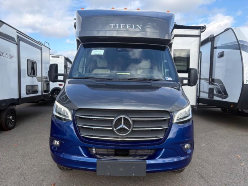 With any Wayfarer Class C diesel coach by Tiffin Motorhomes you will enjoy luxury features both inside and out. There are one-piece molded gel-coat fiberglass front and rear caps plus full-body paint and two layers of clear coat for added protection. The Mercedes-Benz 3500XD dual wheel cutaway chassis provides a strong foundation, and the 2.0L V4 turbo diesel high output 208 HP diesel engine with 332 lb-ft torque will keep you going adventure after adventure! You will love the drive just as much as the destination with adjustable captain's seats that are also heated, intelligent navigation, and a Mercedes-Benz MBUX multimedia system with a 10.25" touchscreen. Wherever you decide to roam, you will be met with interior comforts that include handcrafted overhead cabinetry, solar and privacy shades, solid surface galley countertops and task lighting, and a wardrobe in the bedroom to keep your space tidy.