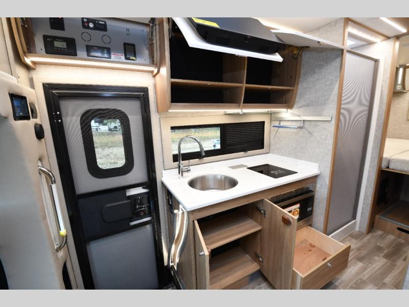 Sea Mist Full Body Paint 2023 · Mercedes 208HP 4 Cylinder · Glistening Trail Cabinets · Sedona Interior · 2 DR 5.3 cuft Ref Electric · (1) 15K Mid A/C · Aluminum Wheels · Bedroom TV · Complete Solar System 200 watts · Generation 7 Ext Pnt Scheme · 4.0 LP Generator · Hydraunic Heating Sys · Induction Cooktop · 2000 Watt Inverter · Lithium Battery Drop-in Solution · Exterior LCD TV · Front TV · Overhead Bunk · Side View Cameras · Snowhill Sand Leatherette · Theatre Seating DS
