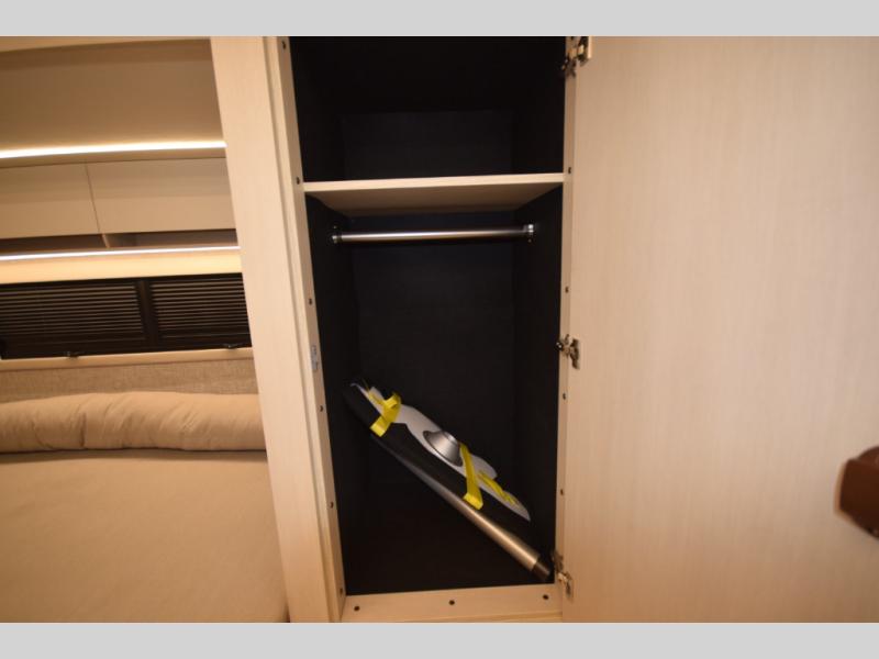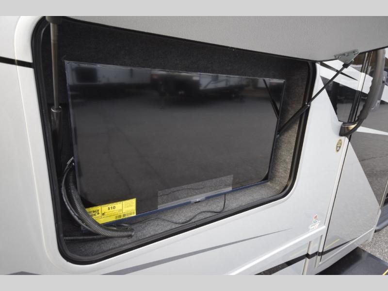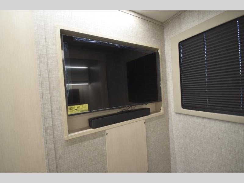 Step inside and feel right at home with the full-wall slide, expanding your living space for a roomy and relaxing interior. At day’s end, stretch out on the plush king bed, complete with dual nightstands and a generous wardrobe to keep your essentials neatly organized. Just steps away, the full bathroom offers all the comforts of home, including a 32” x 36” shower, perfect for washing away the day’s adventures.