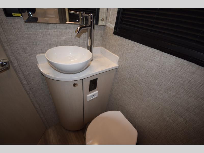 From its sleek one-piece molded gel-coat fiberglass front and rear caps to its full-body paint with two layers of protective clear coat, every detail of the Wayfarer exudes craftsmanship and durability. Inside, you’ll find handcrafted cabinetry, solid surface countertops, solar and privacy shades, and task lighting that create an elegant, functional space wherever the road takes you.