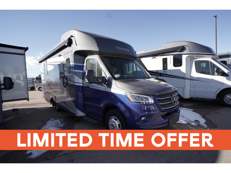 With any Wayfarer Class C diesel coach by Tiffin Motorhomes you will enjoy luxury features both inside and out. There are one-piece molded gel-coat fiberglass front and rear caps plus full-body paint and two layers of clear coat for added protection. The Mercedes-Benz 3500XD dual wheel cutaway chassis provides a strong foundation, and the 2.0L V4 turbo diesel high output 208 HP diesel engine with 332 lb-ft torque will keep you going adventure after adventure! You will love the drive just as much as the destination with adjustable captain's seats that are also heated, intelligent navigation, and a Mercedes-Benz MBUX multimedia system with a 10.25" touchscreen. Wherever you decide to roam, you will be met with interior comforts that include handcrafted overhead cabinetry, solar and privacy shades, solid surface galley countertops and task lighting, and a wardrobe in the bedroom to keep your space tidy.