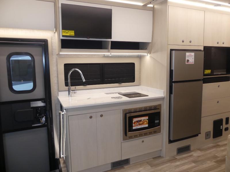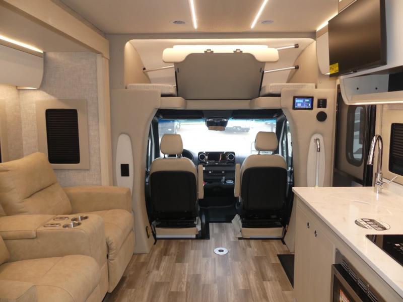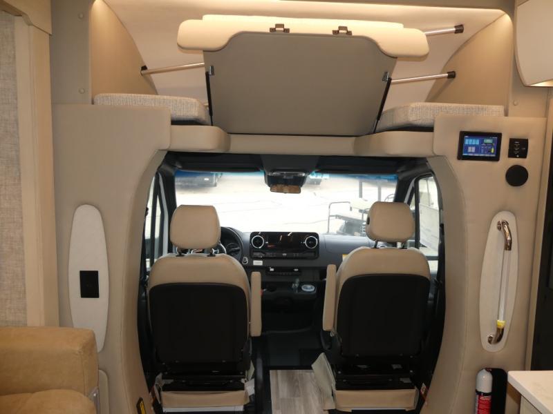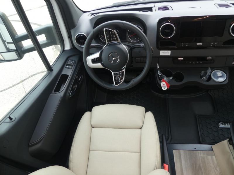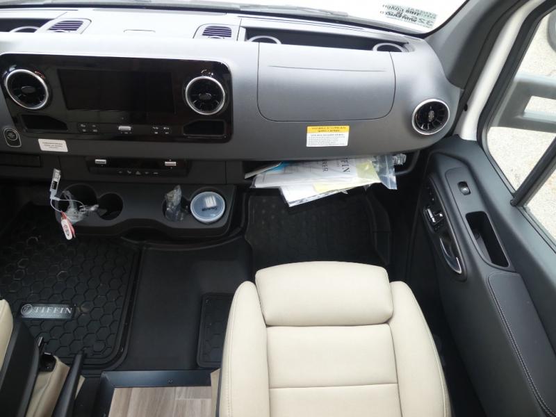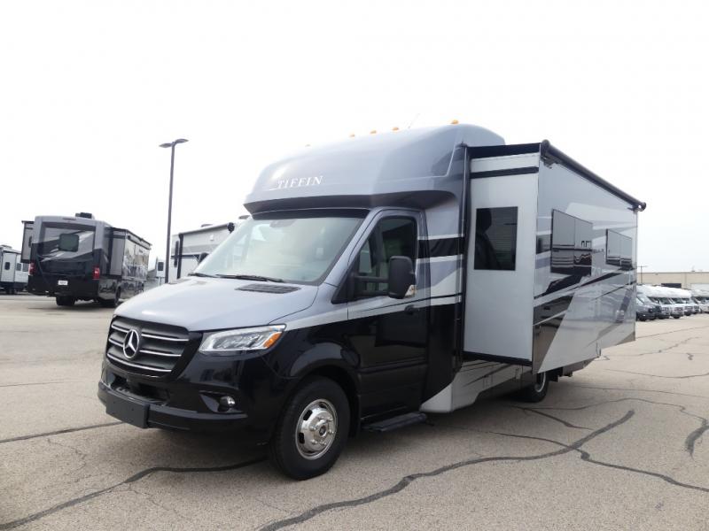 With any Wayfarer Class C diesel coach by Tiffin Motorhomes you will enjoy luxury features both inside and out. There are one-piece molded gel-coat fiberglass front and rear caps plus full-body paint and two layers of clear coat for added protection. The Mercedes-Benz 3500XD dual wheel cutaway chassis provides a strong foundation, and the 2.0L V4 turbo diesel high output 208 HP diesel engine with 332 lb-ft torque will keep you going adventure after adventure! You will love the drive just as much as the destination with adjustable captain's seats that are also heated, intelligent navigation, and a Mercedes-Benz MBUX multimedia system with a 10.25" touchscreen. Wherever you decide to roam, you will be met with interior comforts that include handcrafted overhead cabinetry, solar and privacy shades, solid surface galley countertops and task lighting, and a wardrobe in the bedroom to keep your space tidy.