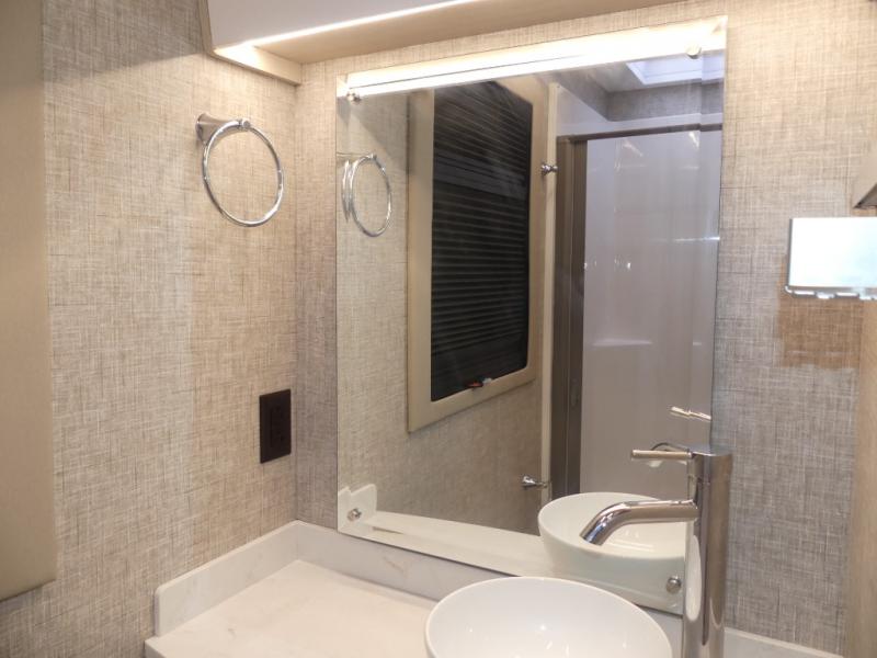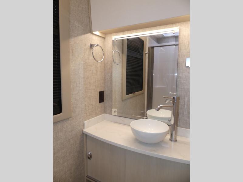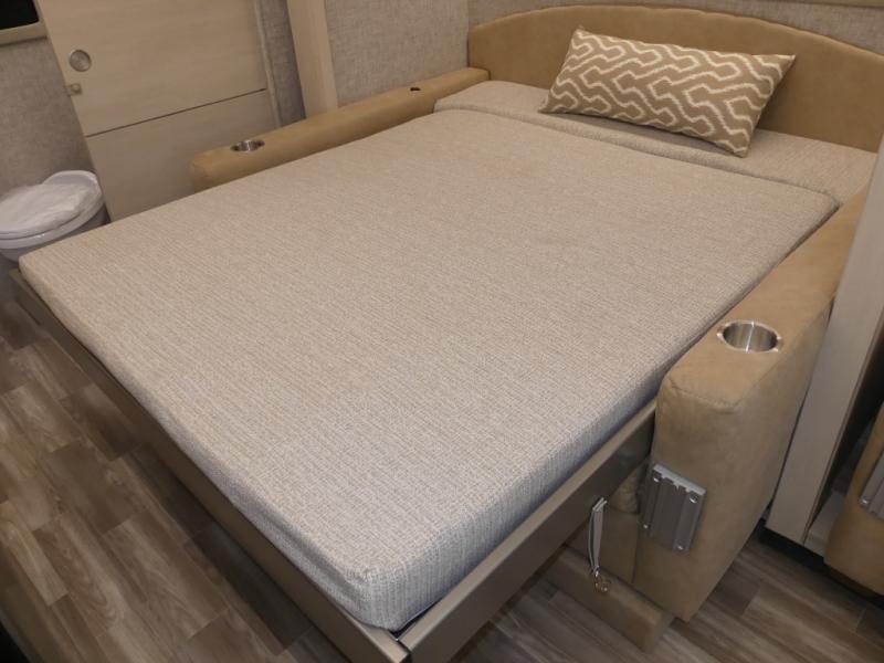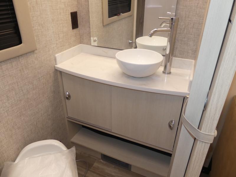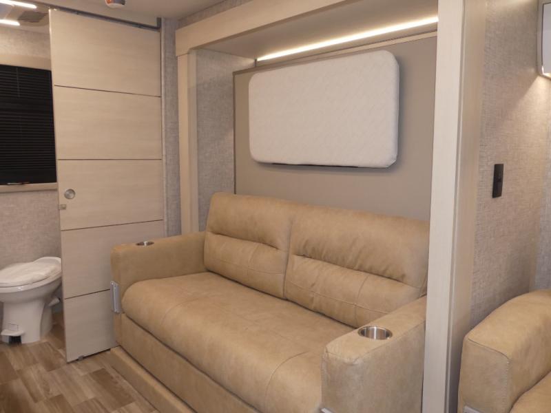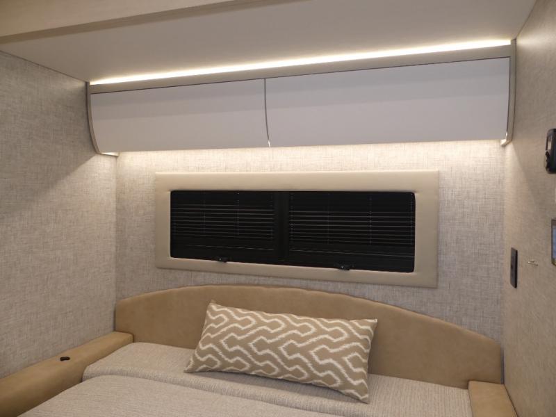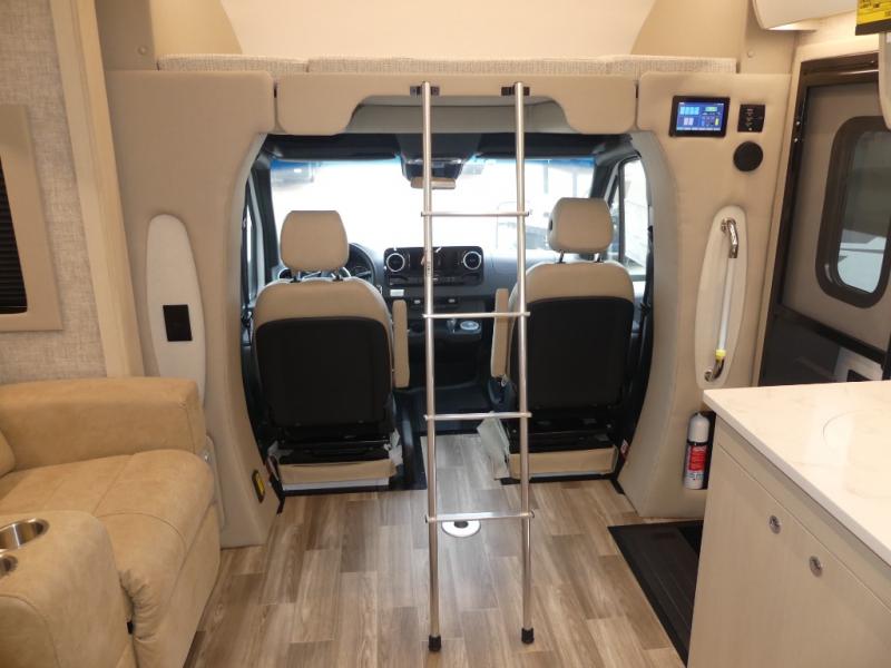 With any Wayfarer Class C diesel coach by Tiffin Motorhomes you will enjoy luxury features both inside and out. There are one-piece molded gel-coat fiberglass front and rear caps plus full-body paint and two layers of clear coat for added protection. The Mercedes-Benz 3500XD dual wheel cutaway chassis provides a strong foundation, and the 2.0L V4 turbo diesel high output 208 HP diesel engine with 332 lb-ft torque will keep you going adventure after adventure! You will love the drive just as much as the destination with adjustable captain's seats that are also heated, intelligent navigation, and a Mercedes-Benz MBUX multimedia system with a 10.25" touchscreen. Wherever you decide to roam, you will be met with interior comforts that include handcrafted overhead cabinetry, solar and privacy shades, solid surface galley countertops and task lighting, and a wardrobe in the bedroom to keep your space tidy.