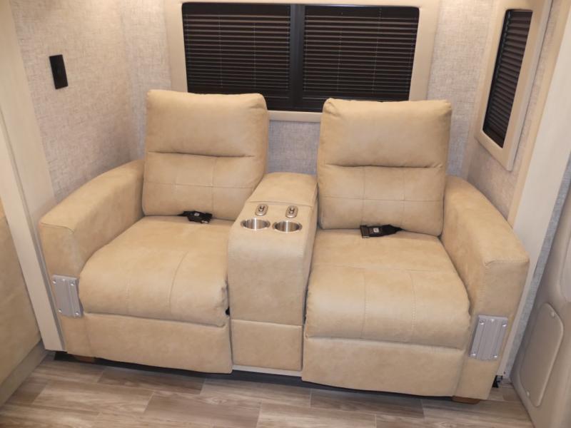Travel with your favorite person, family, or some friends to see nature along the highways, up close and where ever the road takes you! You will find sleeping space for five with the bunk over the cab, the booth dinette-sleeper, and the versatile queen-size Murphy bed and sofa combo! The rear full bathroom gives you privacy, and the galley kitchen lets you make meals on the two burner cooktop and convection microwave oven.