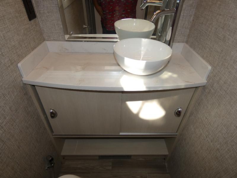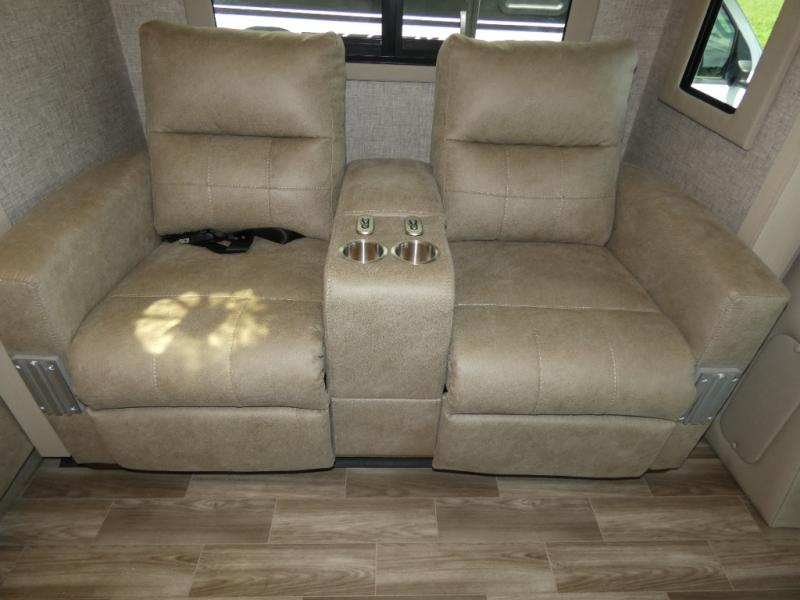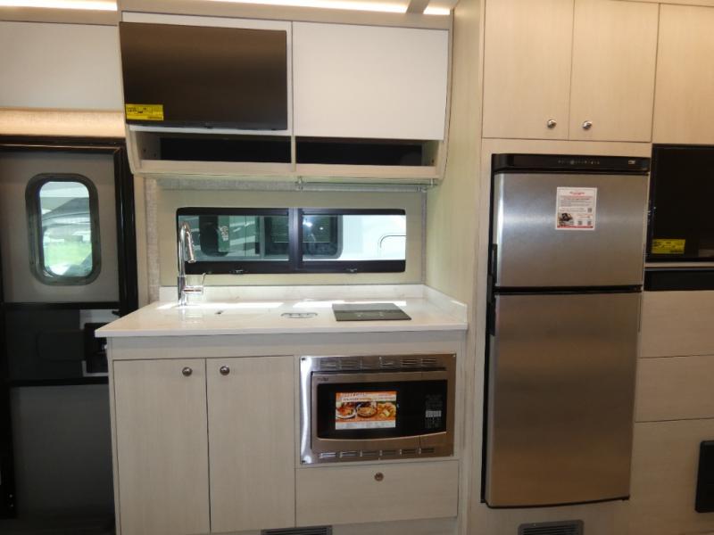 Travel with your favorite person, family, or some friends to see nature along the highways, up close and where ever the road takes you! You will find sleeping space with the bunk over the cab, and the versatile queen-size Murphy bed and sofa combo! The rear full bathroom gives you privacy, and the galley kitchen lets you make meals on the two burner cooktop and convection microwave oven.