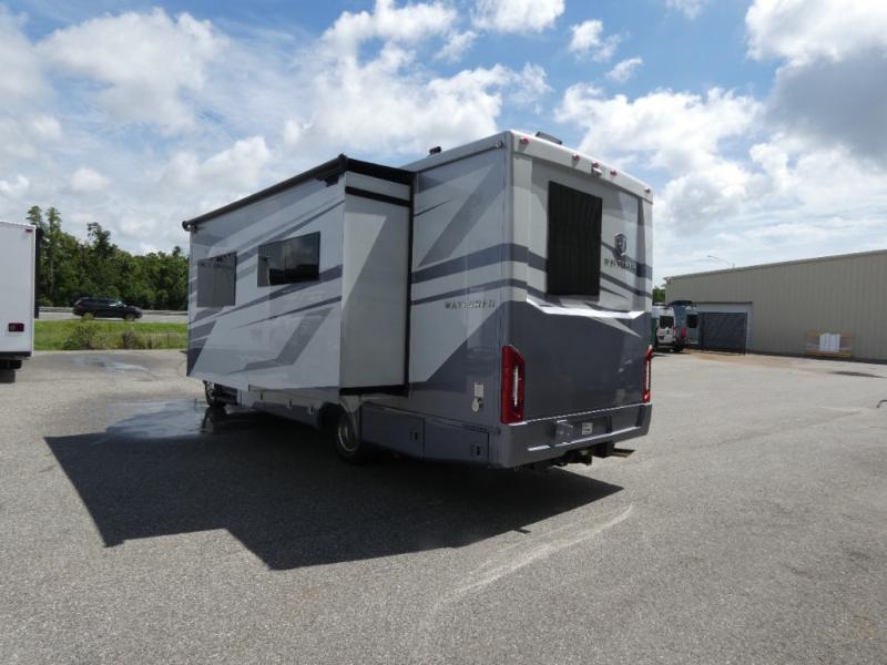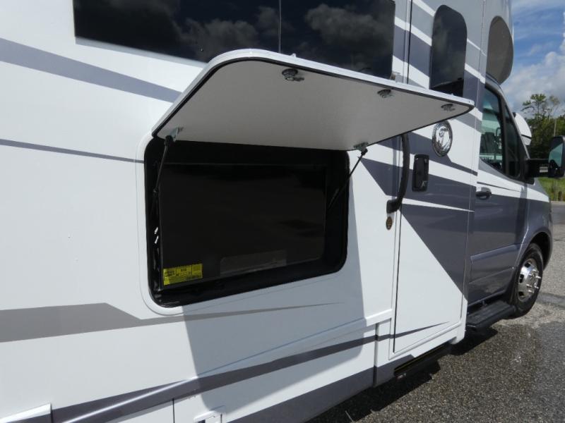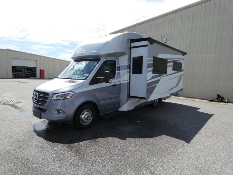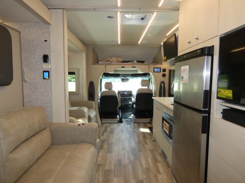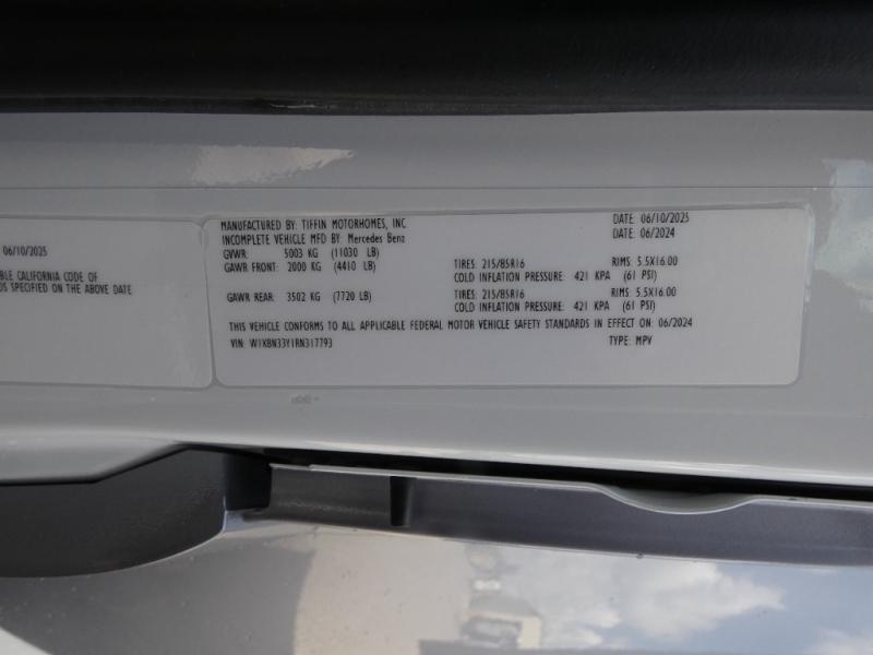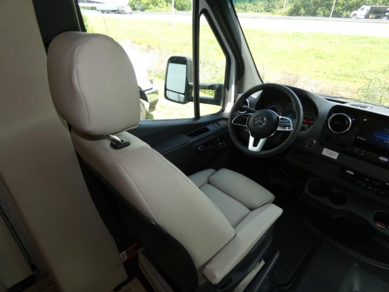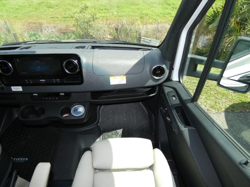 With any Wayfarer Class C diesel coach by Tiffin Motorhomes you will enjoy luxury features both inside and out. There are one-piece molded gel-coat fiberglass front and rear caps plus full-body paint and two layers of clear coat for added protection. The Mercedes-Benz 3500XD dual wheel cutaway chassis provides a strong foundation, and the 2.0L V4 turbo diesel high output 208 HP diesel engine with 332 lb-ft torque will keep you going adventure after adventure! You will love the drive just as much as the destination with adjustable captain's seats that are also heated, intelligent navigation, and a Mercedes-Benz MBUX multimedia system with a 10.25" touchscreen. Wherever you decide to roam, you will be met with interior comforts that include handcrafted overhead cabinetry, solar and privacy shades, solid surface galley countertops and task lighting, and a wardrobe in the bedroom to keep your space tidy.