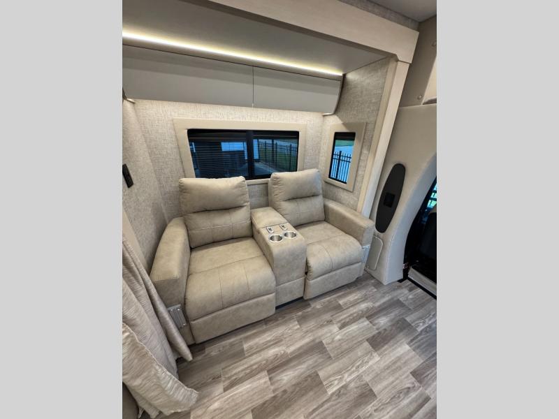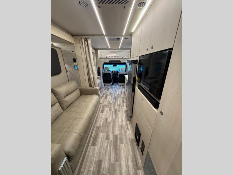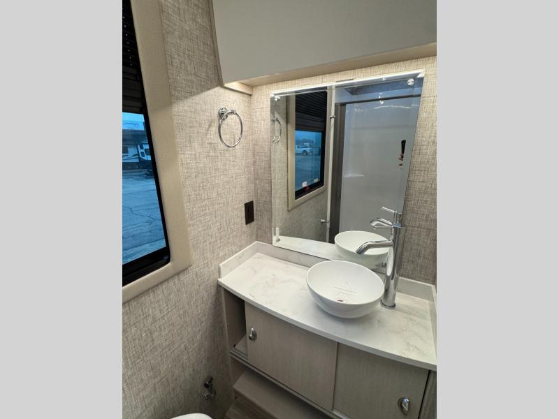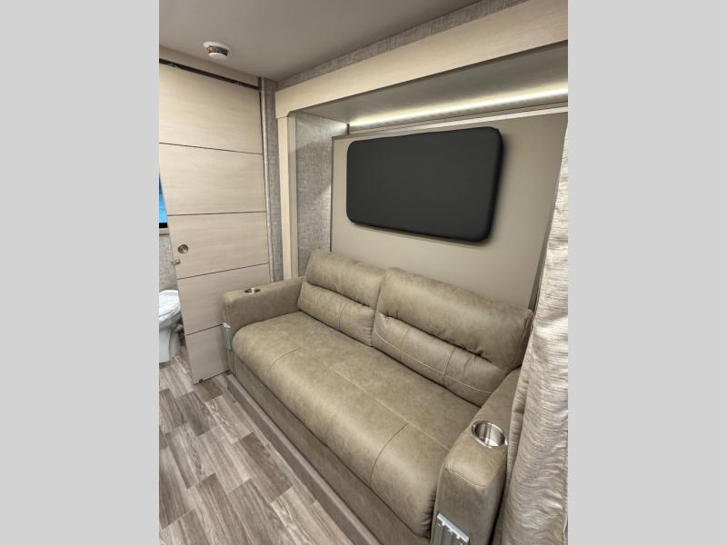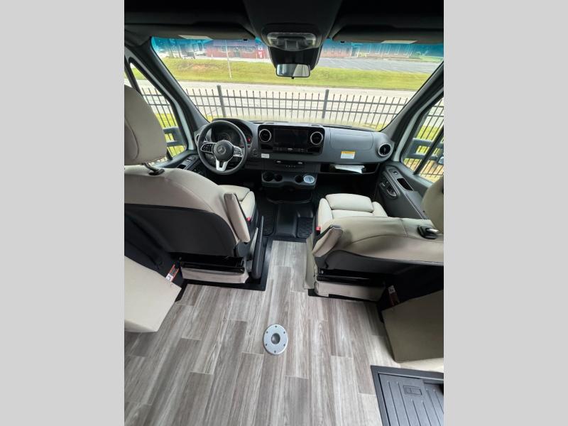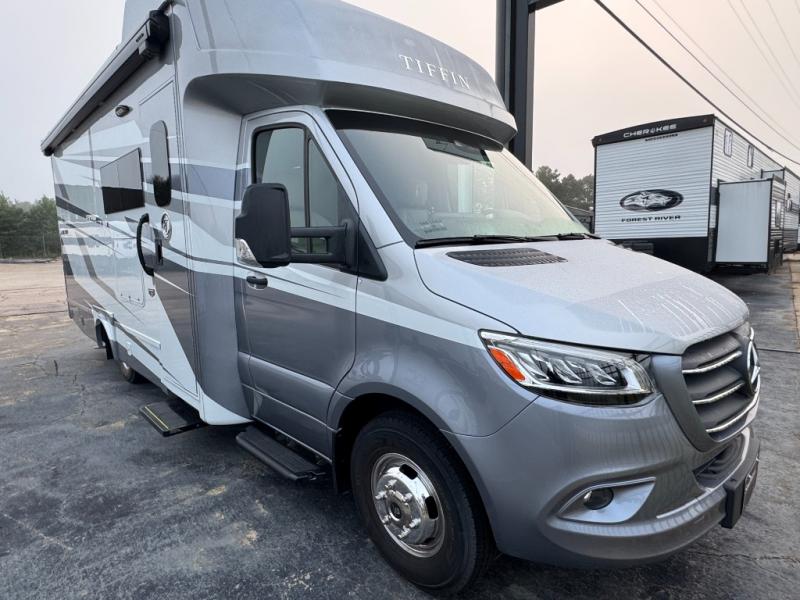 With any Wayfarer Class C diesel coach by Tiffin Motorhomes you will enjoy luxury features both inside and out. There are one-piece molded gel-coat fiberglass front and rear caps plus full-body paint and two layers of clear coat for added protection. The Mercedes-Benz 3500XD dual wheel cutaway chassis provides a strong foundation, and the 2.0L V4 turbo diesel high output 208 HP diesel engine with 332 lb-ft torque will keep you going adventure after adventure! You will love the drive just as much as the destination with adjustable captain's seats that are also heated, intelligent navigation, and a Mercedes-Benz MBUX multimedia system with a 10.25" touchscreen. Wherever you decide to roam, you will be met with interior comforts that include handcrafted overhead cabinetry, solar and privacy shades, solid surface galley countertops and task lighting, and a wardrobe in the bedroom to keep your space tidy.