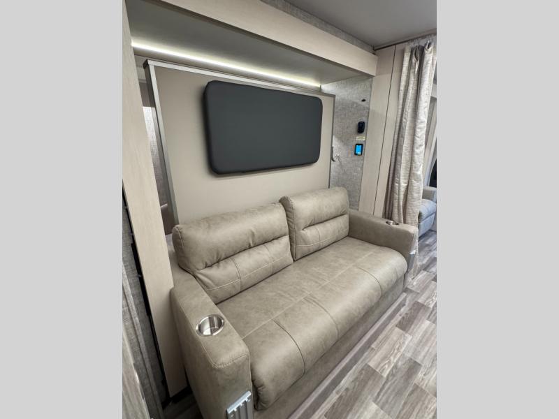 Travel with your favorite person, family, or some friends to see nature along the highways, up close and where ever the road takes you! You will find sleeping space for five with the bunk over the cab, the booth dinette-sleeper, and the versatile queen-size Murphy bed and sofa combo! The rear full bathroom gives you privacy, and the galley kitchen lets you make meals on the two burner cooktop and convection microwave oven. You might like to add a few options to customize your coach such as optional theater seating, or a tri-fold sofa in place of the dinette, a central vacuum system, an overhead entertainment center in place of the bunk, and/or an exterior TV to enjoy under the awning.