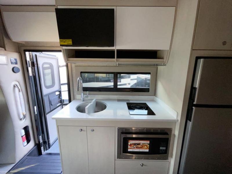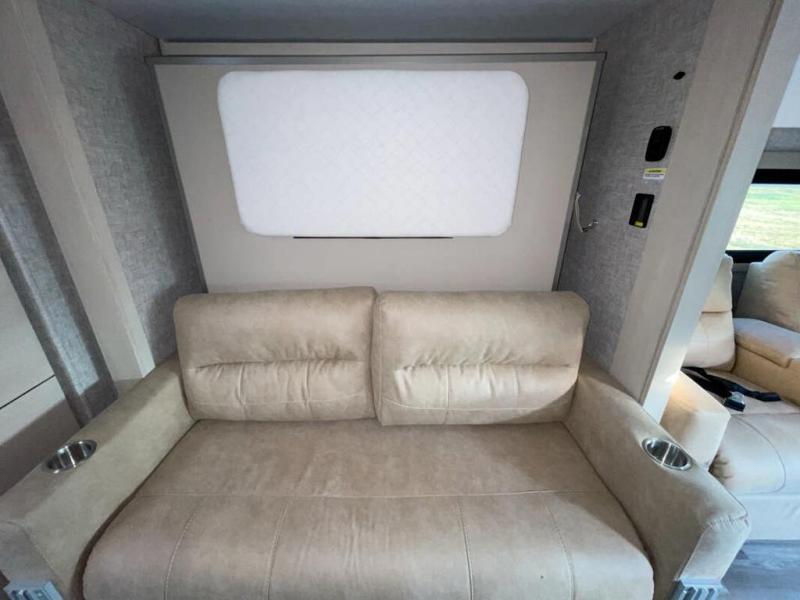 Travel with your favorite person, family, or some friends to see nature along the highways, up close and where ever the road takes you! You will find sleeping space for five with the bunk over the cab, the booth dinette-sleeper, and the versatile queen-size Murphy bed and sofa combo! The rear full bathroom gives you privacy, and the galley kitchen lets you make meals on the two burner cooktop and convection microwave oven. You might like to add a few options to customize your coach such as optional theater seating, or a tri-fold sofa in place of the dinette, a central vacuum system, an overhead entertainment center in place of the bunk, and/or an exterior TV to enjoy under the awning.