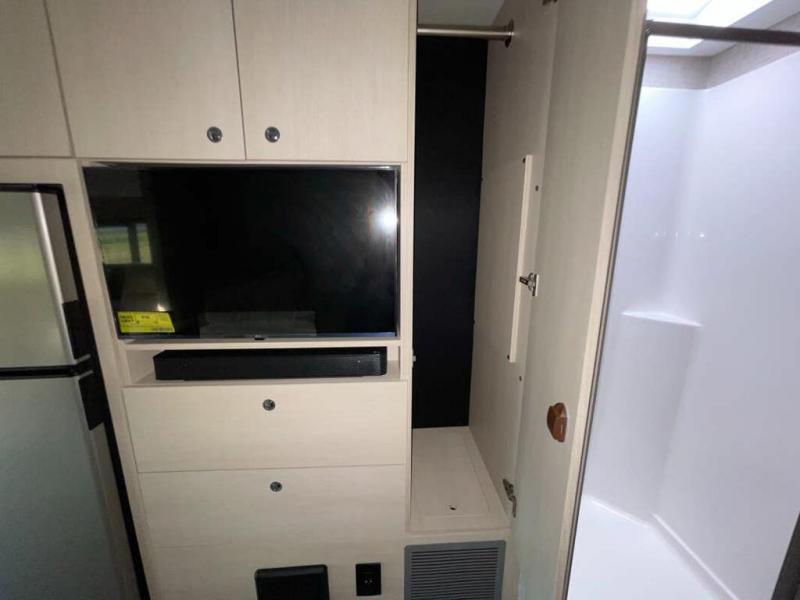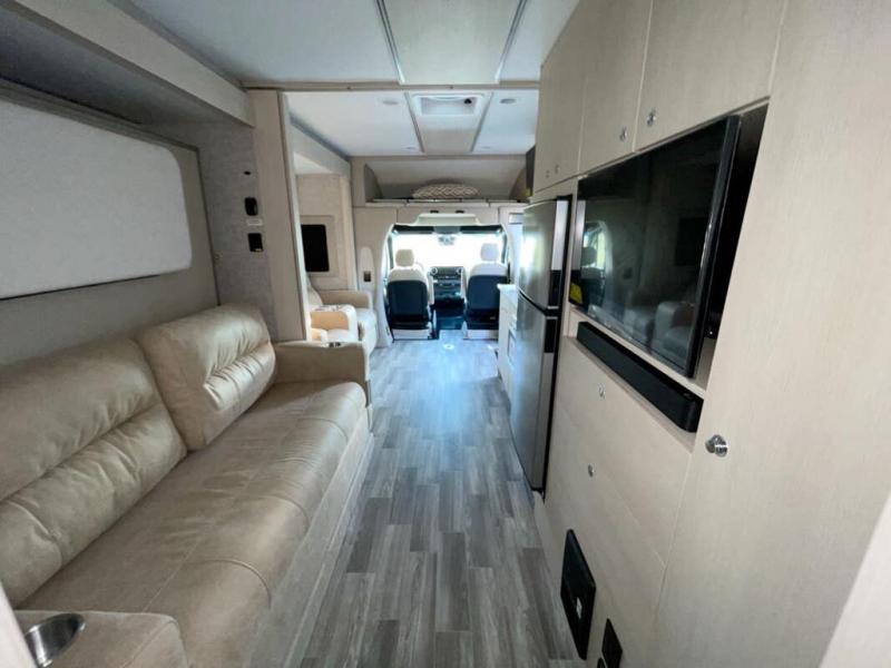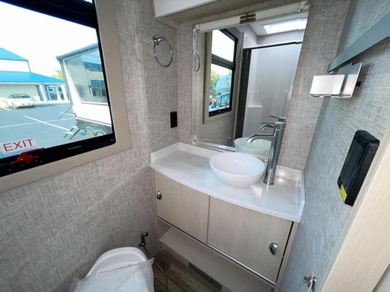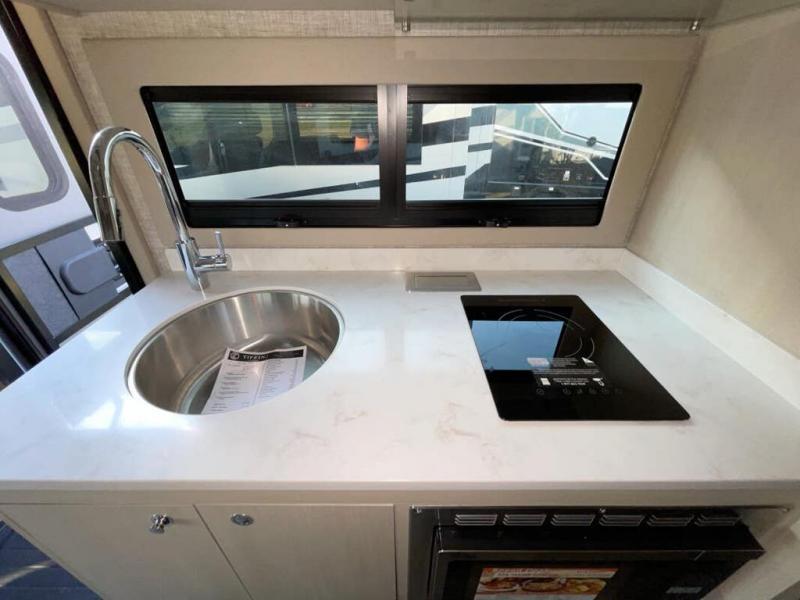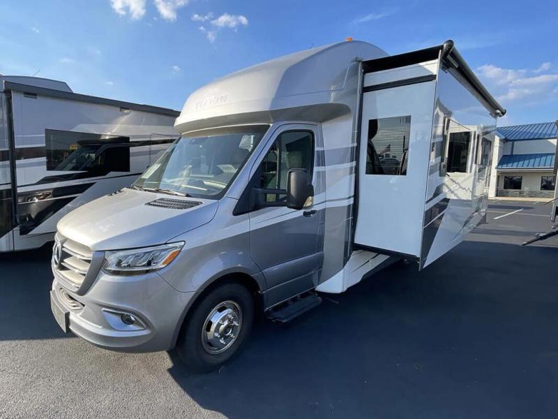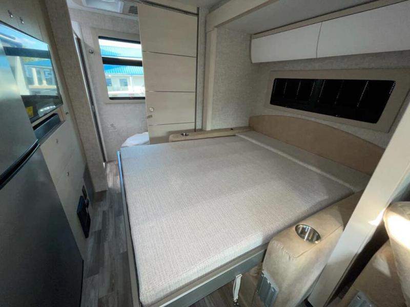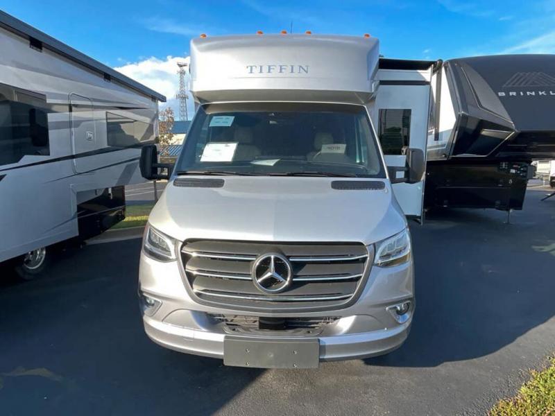 With any Wayfarer Class C diesel coach by Tiffin Motorhomes you will enjoy luxury features both inside and out. There are one-piece molded gel-coat fiberglass front and rear caps plus full-body paint and two layers of clear coat for added protection. The Mercedes-Benz 3500XD dual wheel cutaway chassis provides a strong foundation, and the 2.0L V4 turbo diesel high output 208 HP diesel engine with 332 lb-ft torque will keep you going adventure after adventure! You will love the drive just as much as the destination with adjustable captain's seats that are also heated, intelligent navigation, and a Mercedes-Benz MBUX multimedia system with a 10.25" touchscreen. Wherever you decide to roam, you will be met with interior comforts that include handcrafted overhead cabinetry, solar and privacy shades, solid surface galley countertops and task lighting, and a wardrobe in the bedroom to keep your space tidy.