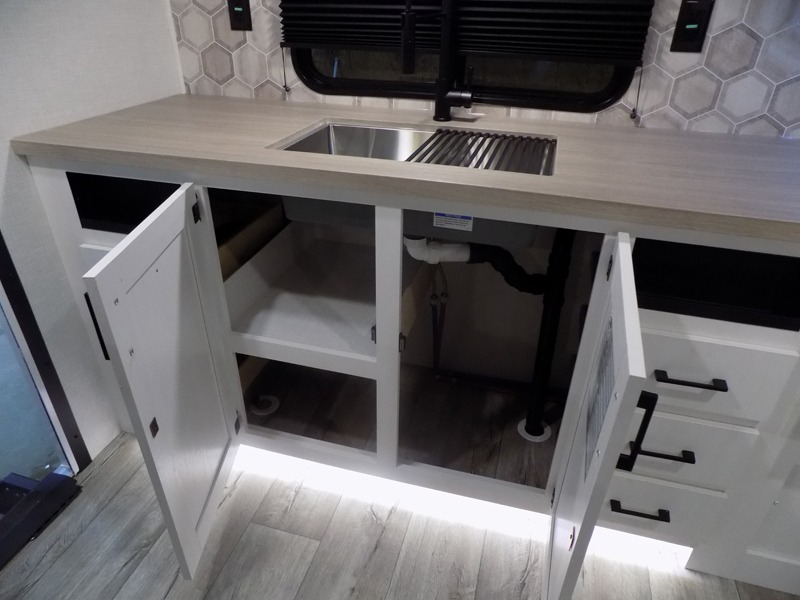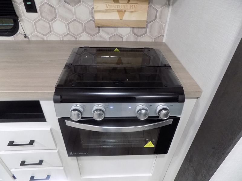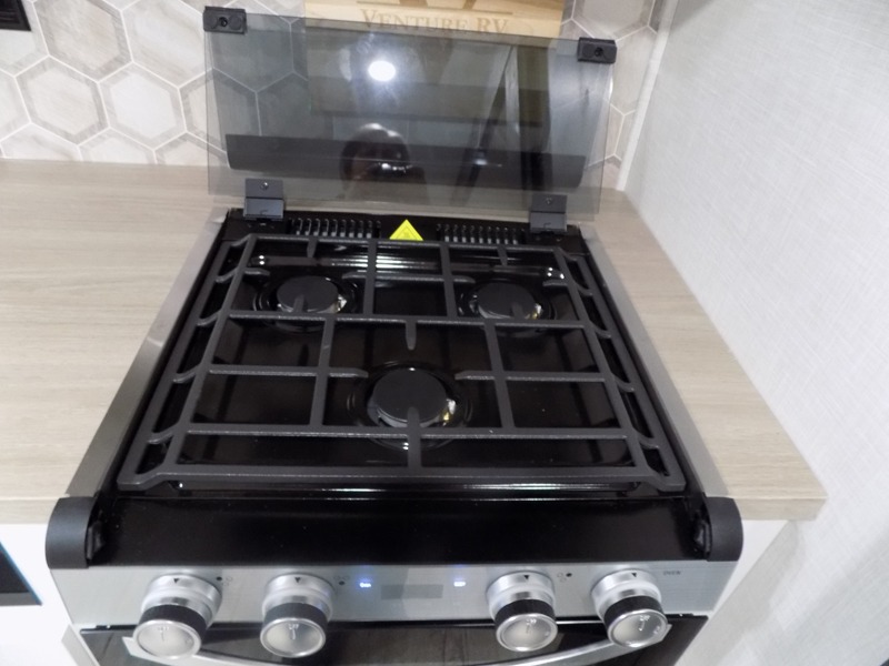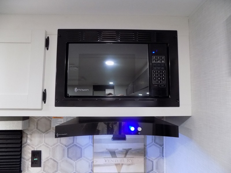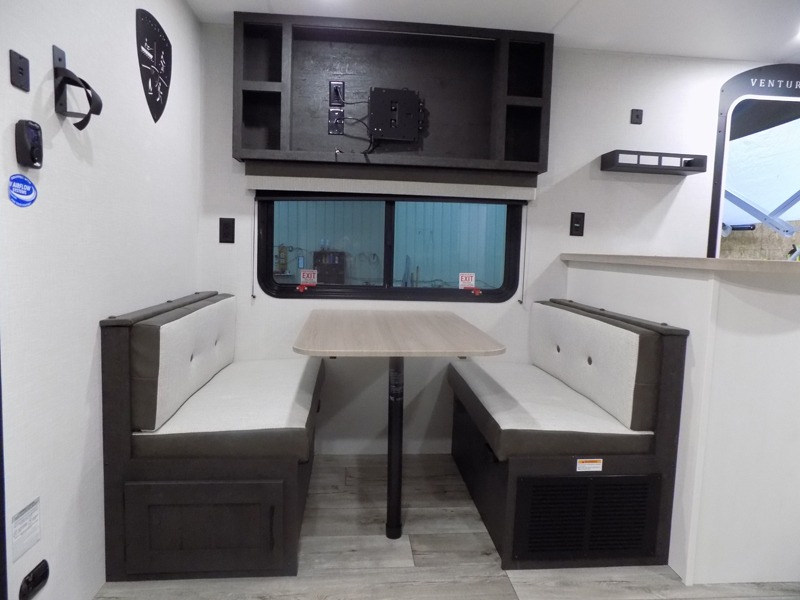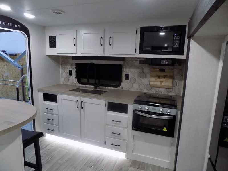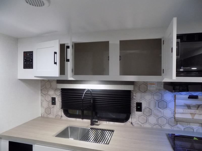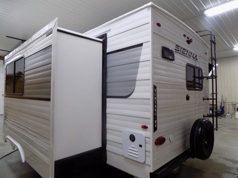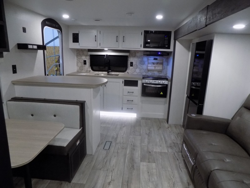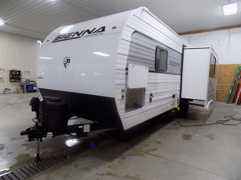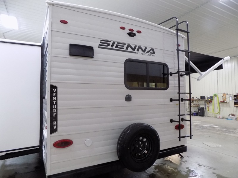 With any Sienna travel trailer by Venture RV, you will enjoy a lightweight unit, convenient amenities, and a durable construction that includes a BAL NXG-bolted frame. There is also a heated and enclosed one-piece underbelly, residential fiberglass insulation, and a reflective PVC roof membrane within the Weather-Shield Package to help extend your camping season. Outside, the BAL 5.0 power stabilizer jacks and power tongue jack will have you set up in no-time, and the Venture RV bottle opener/dog tie down will make it easy to bring your furry friends along. Head inside to enjoy the modern farmhouse design, along with Beauflor throughout with no carpet, custom backsplash, large underbed storage, and a bath skylight to name a few comforts!