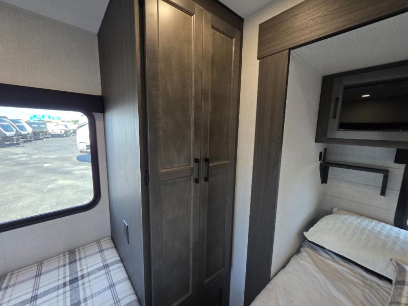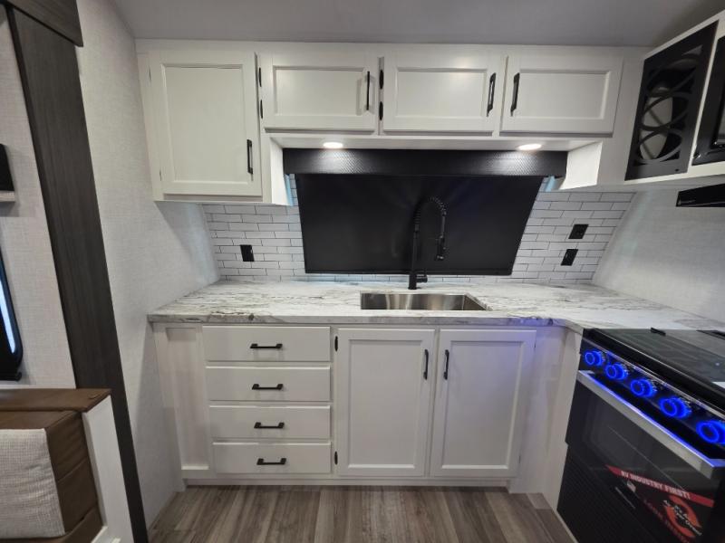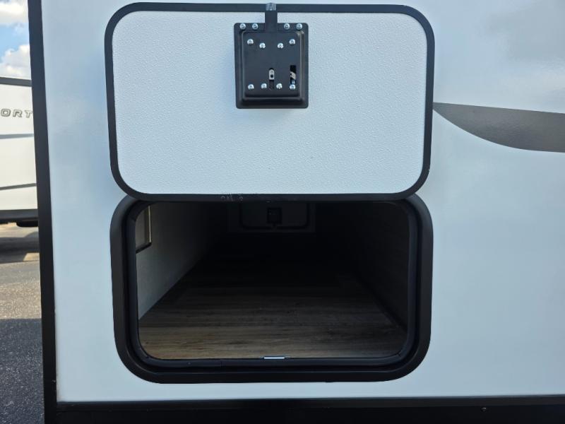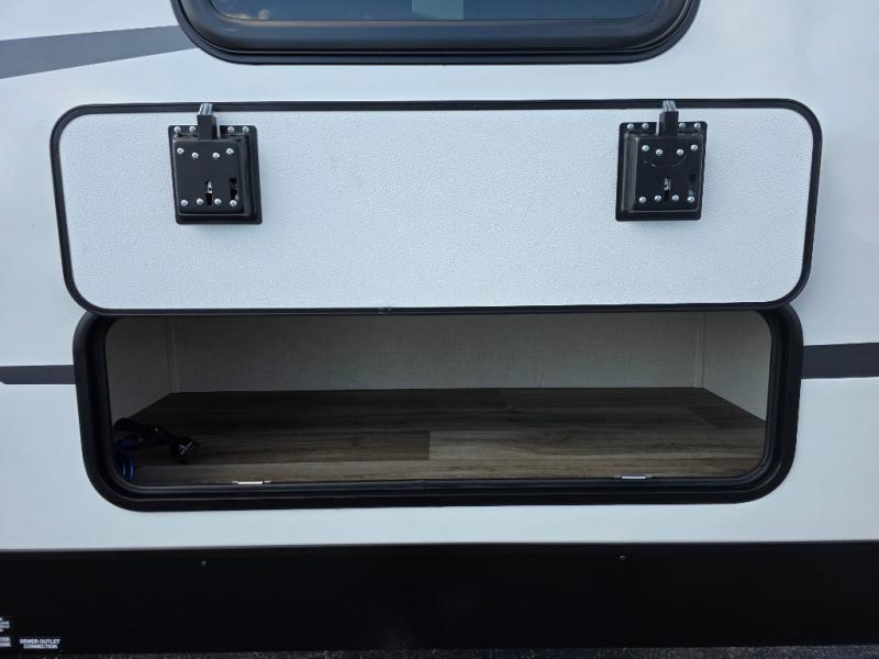 Every Venture RV SportTrek lightweight travel trailer is constructed to offer peace of mind and the comforts of home! Their purposeful residential kitchens are packed with handy features like a Furrion oven and three burner cooktop, a large stainless steel sink with a cover and dish drying rack, plus a 12V refrigerator. You will find plenty of storage throughout, including Safe-Tek hidden storage with a charging center and StorMore nightstands on either side of the bed behind the full-length closets. And the magnetic slam-latch baggage doors and spacious pass-through storage area will hold your outdoor gear in place. They even come with a hot and cold exterior shower and SporTrek's Weather Shield which includes a forced air heated and enclosed underbelly, high output A/C ducting, and more features that will let you extend your camping season. You will also love the new residential upgraded furniture, Serta memory foam mattress, barn style passage doors, and many more comforts!