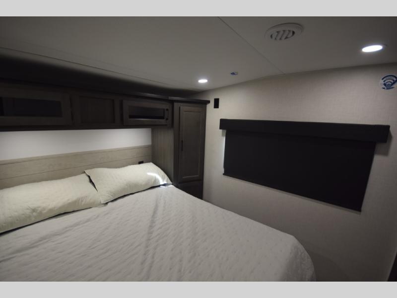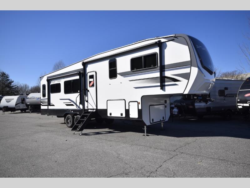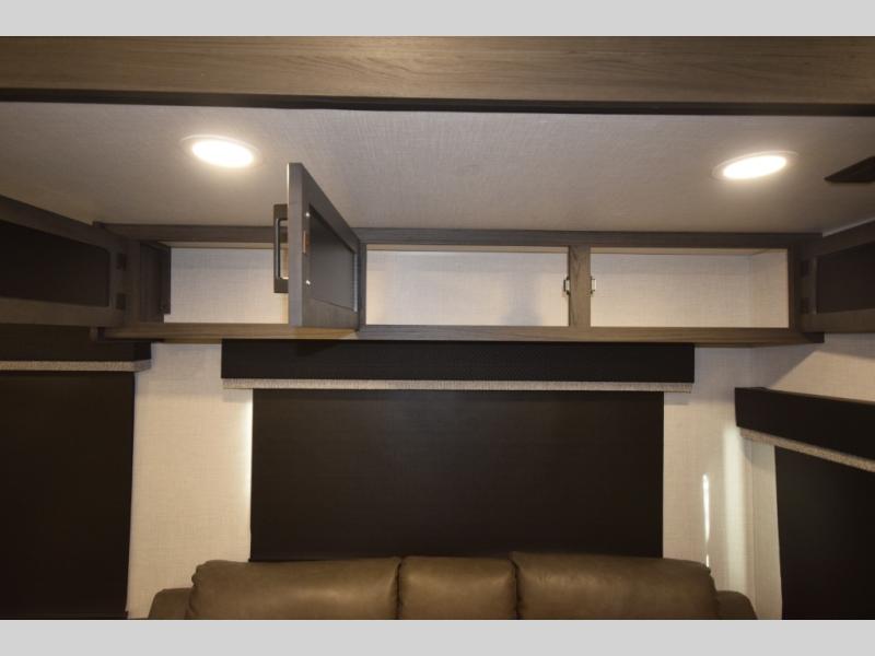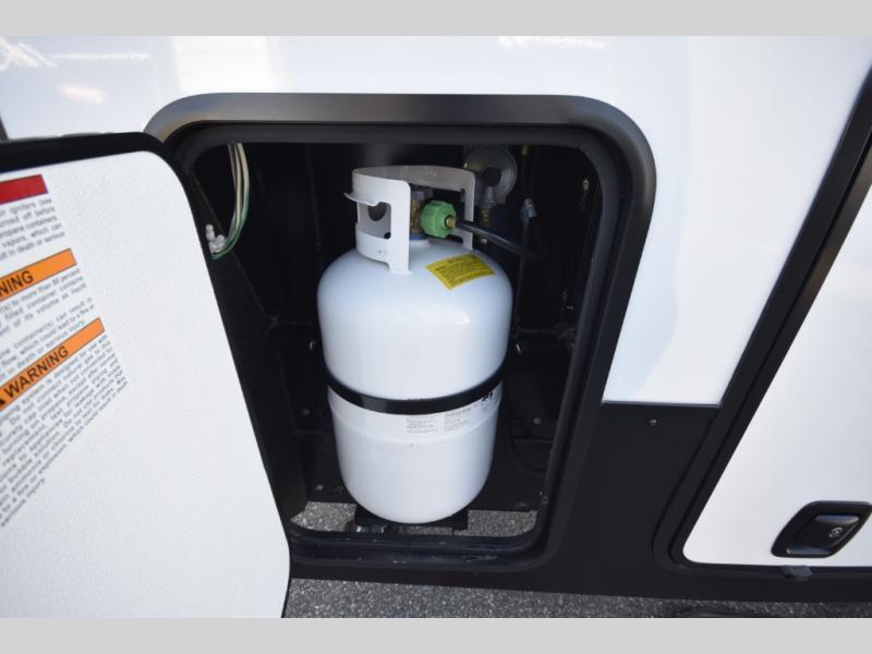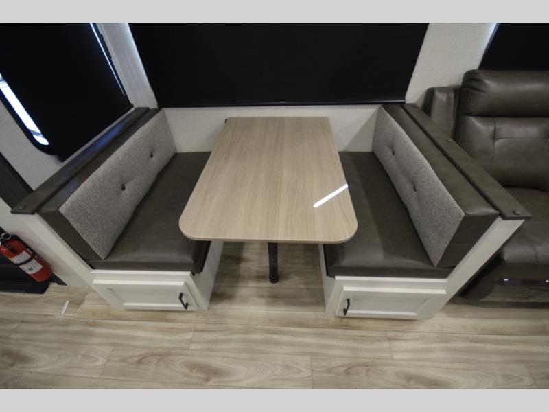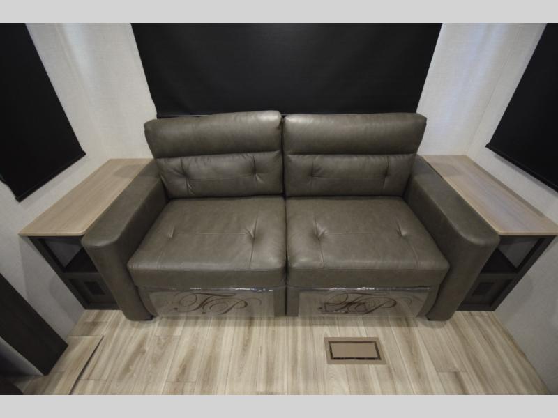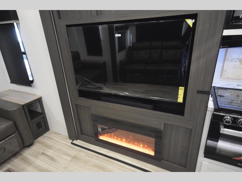 The SportTrek Fifth Wheel lineup blends modern design with everyday comfort to elevate every journey. The painted fiberglass front cap with integrated LED lighting enhances both style and visibility, giving this RV a confident, aerodynamic presence on the road. Inside, a 5,000 BTU electric fireplace adds warmth and ambiance, while the JBL sound bar with Bluetooth Flip speaker delivers premium audio inside and out—perfect for setting the mood at camp or enjoying your favorite tunes under the stars.