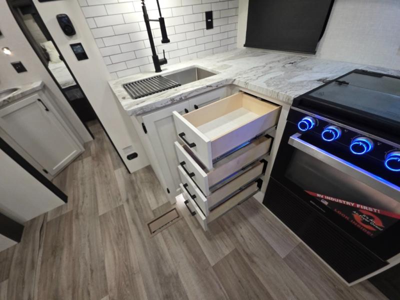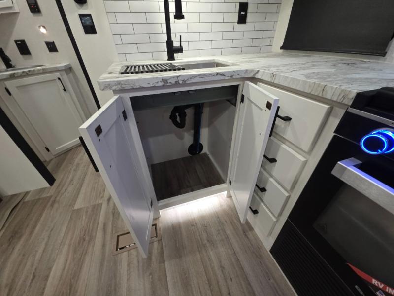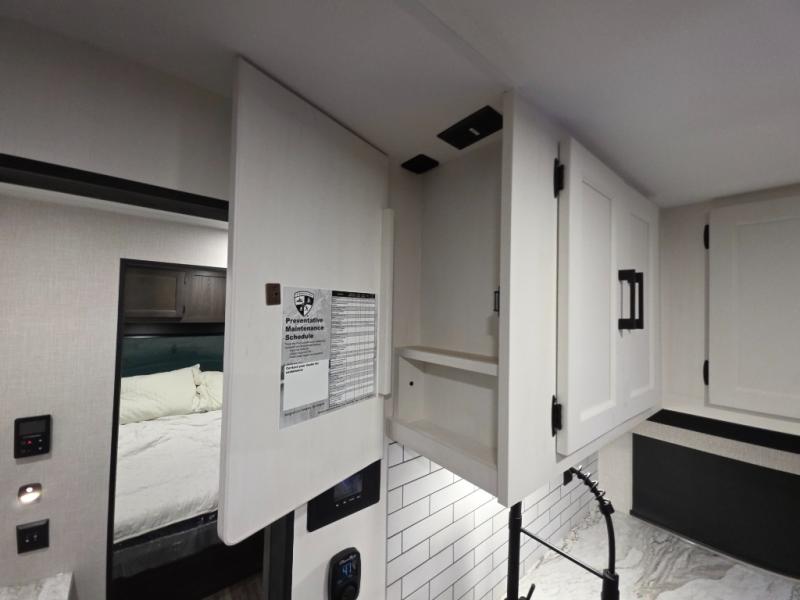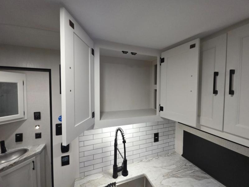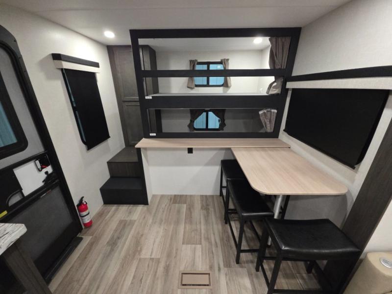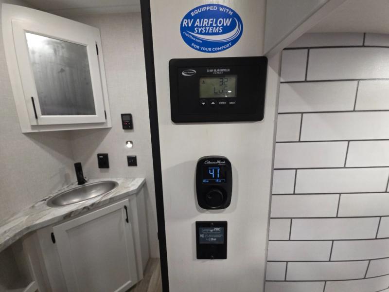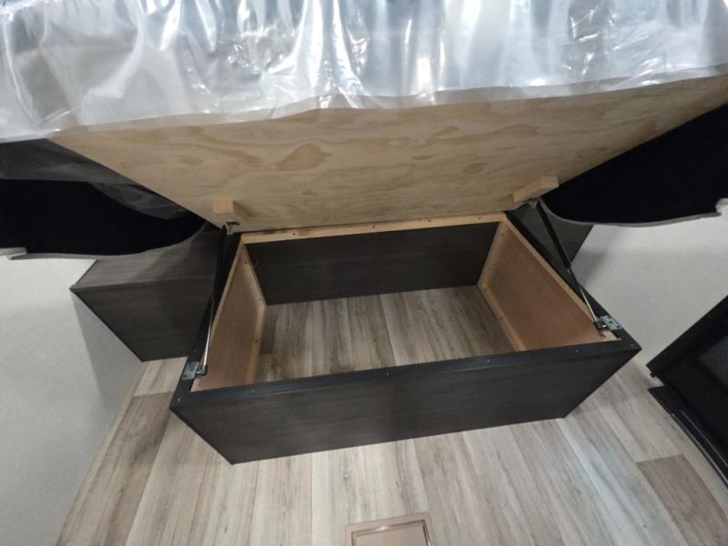 Every Venture RV SportTrek lightweight travel trailer is constructed to offer peace of mind and the comforts of home! Their purposeful residential kitchens are packed with handy features like a Furrion oven and three burner cooktop, a large stainless steel sink with a cover and dish drying rack, plus a 12V refrigerator. You will find plenty of storage throughout, including Safe-Tek hidden storage with a charging center and StorMore nightstands on either side of the bed behind the full-length closets. And the magnetic slam-latch baggage doors and spacious pass-through storage area will hold your outdoor gear in place. They even come with a hot and cold exterior shower and SporTrek's Weather Shield which includes a forced air heated and enclosed underbelly, radiant foil insulation wrapped tanks, and more features that will let you extend your camping season. You will also love the new residential upgraded furniture, Serta memory foam mattress, barn style passage doors, and many more comforts!