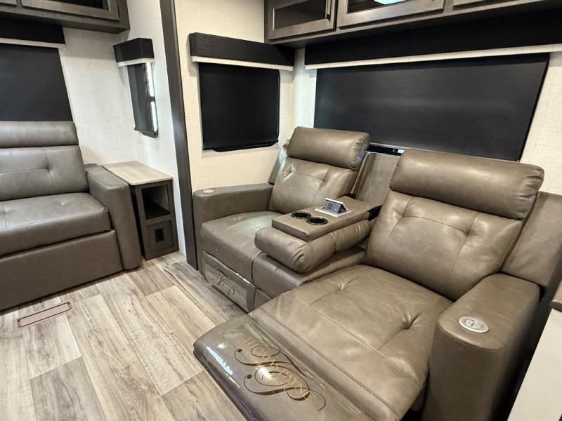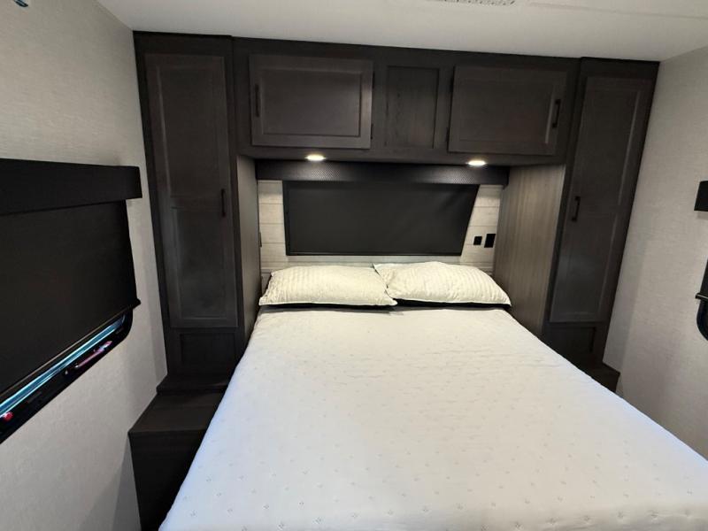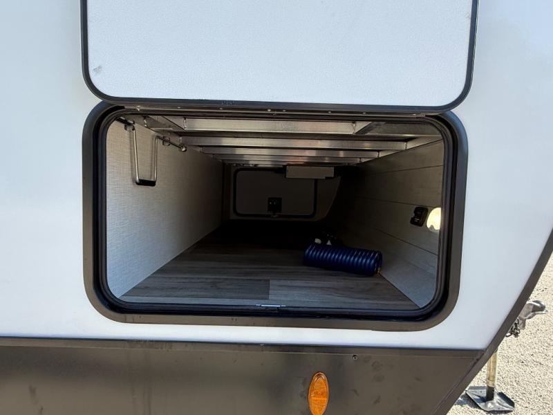You will feel right at home camping in this travel trailer! From the front private bedroom with a Sleep Tight queen bed to the rear living area with a 70" sofa. The living area also has theater seating with USB ports across from the entertainment center that has a 40" TV for all to see, even those preparing dinner at the kitchen island. Breathe in some fresh air and enjoy a sunrise breakfast as you cook pancakes on the griddle at the outside campfire café. You can store your dishes in the hutch and play games at the Sit N' Slide table with flipside reversible cushions. After a fun day at the beach, head to the dual entry bathroom to rinse the sand out of your hair in the 34" radius shower and grab your towel from the convenient linen closet!