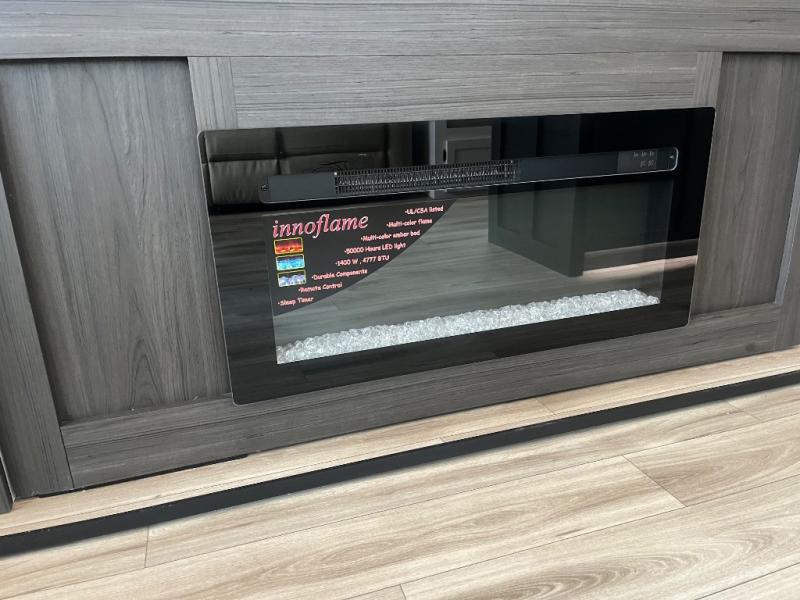 Experience travel redefined with the Venture RV SportTrek Fifth Wheel, where modern design meets everyday comfort. The painted fiberglass front cap with integrated LED lighting gives this RV a bold, aerodynamic look while enhancing visibility on the road. Inside, unwind in the living area with a 5,000 BTU electric fireplace, creating the perfect ambiance after a day of adventure. The JBL sound bar with a Bluetooth Flip speaker delivers premium audio inside and out, making entertainment effortless wherever you roam. And with a tankless water heater, you’ll enjoy endless hot water for showers and cleaning, ensuring that every journey feels just like home.