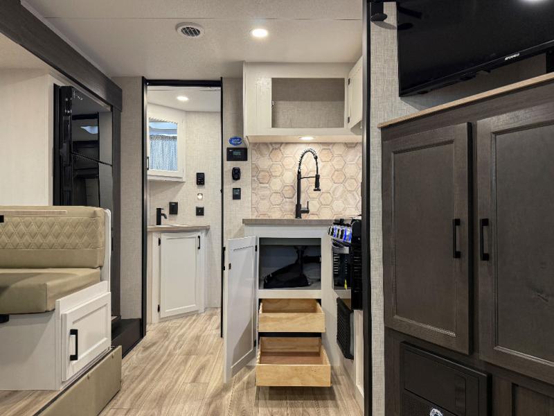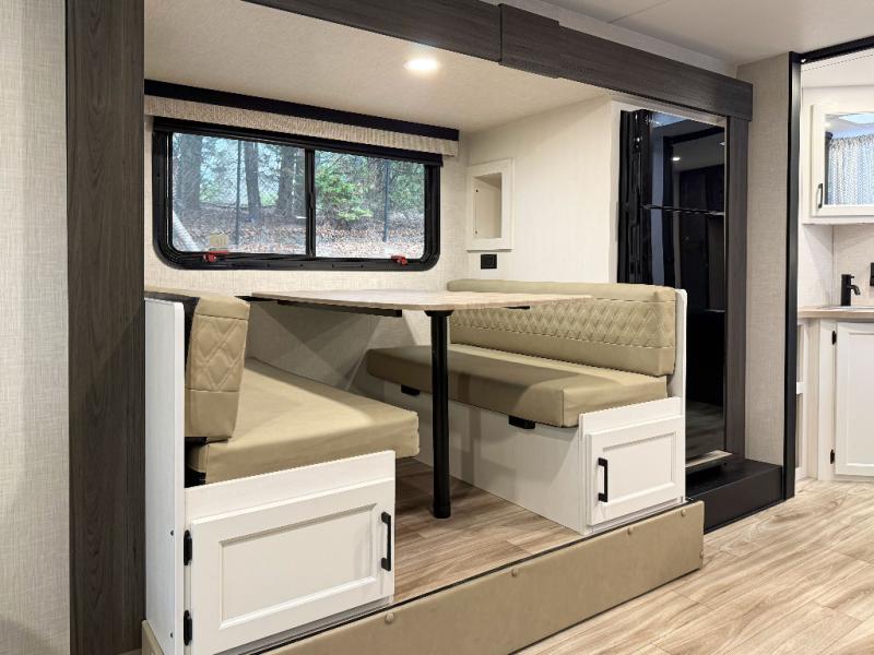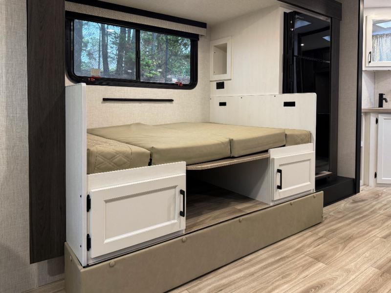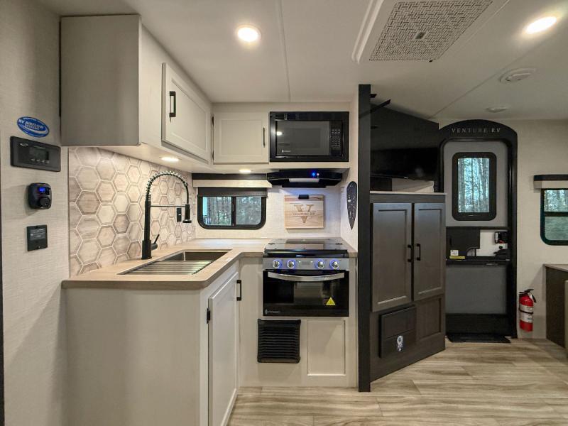 Up front, you’ll find a private bedroom that provides a quiet retreat, while the thoughtfully designed bathroom offers convenience and comfort. Built with lightweight construction and Venture RV’s quality craftsmanship, the SportTrek Stringer 232VRL is ideal for travelers looking for an easy-to-tow trailer without sacrificing style or functionality. Contact us today for pricing and availability and be among the first to own this highly anticipated camper when it arrives.