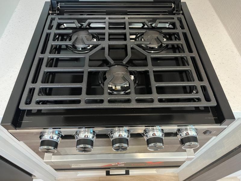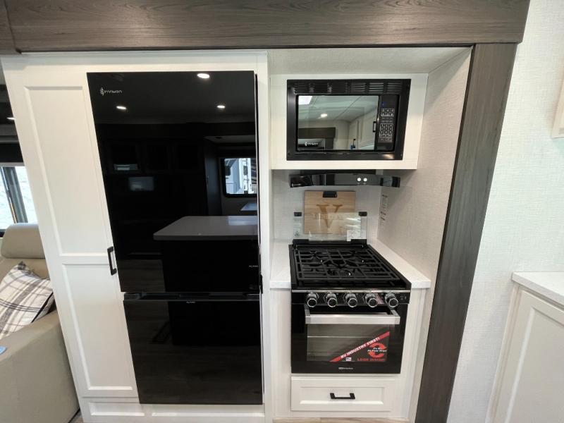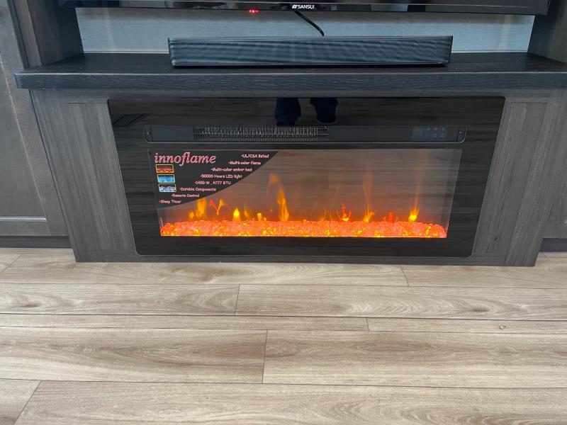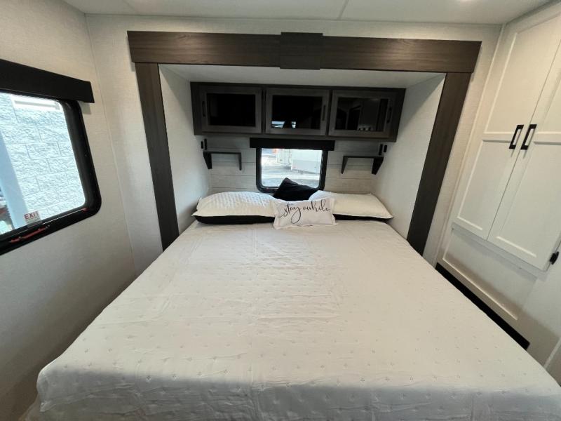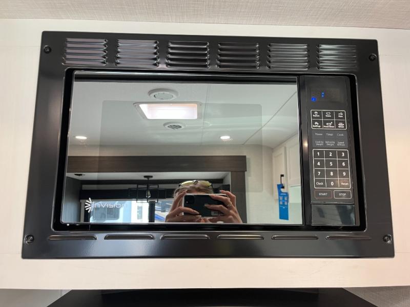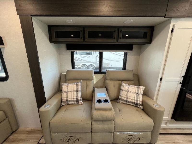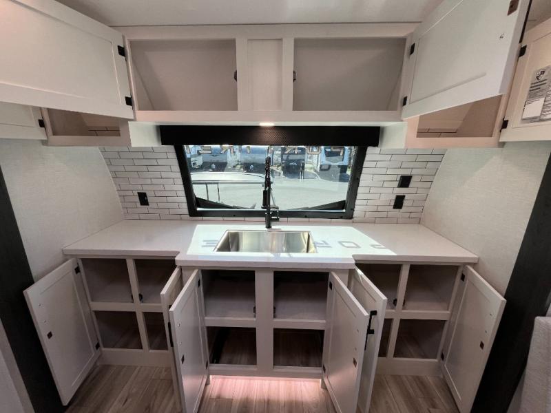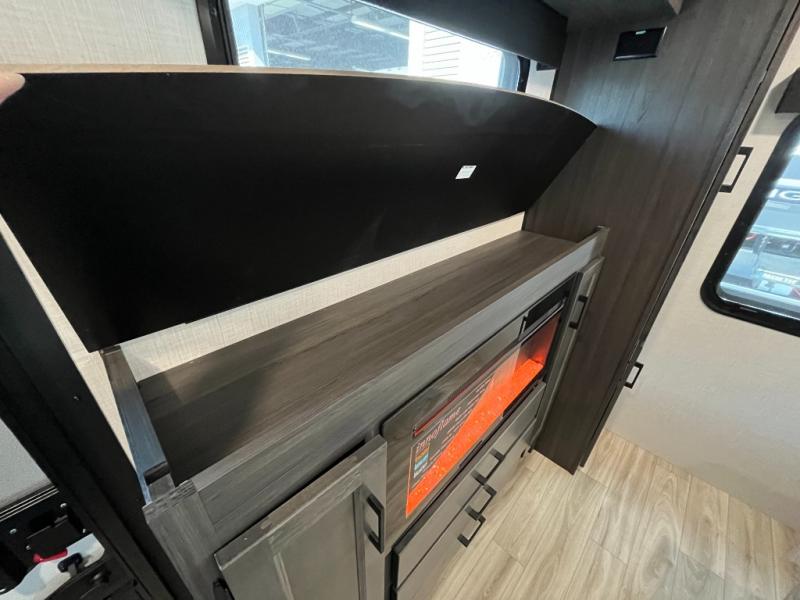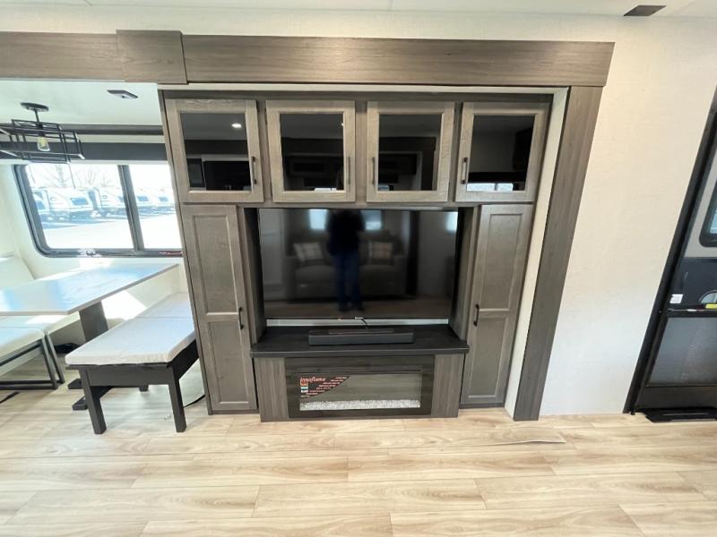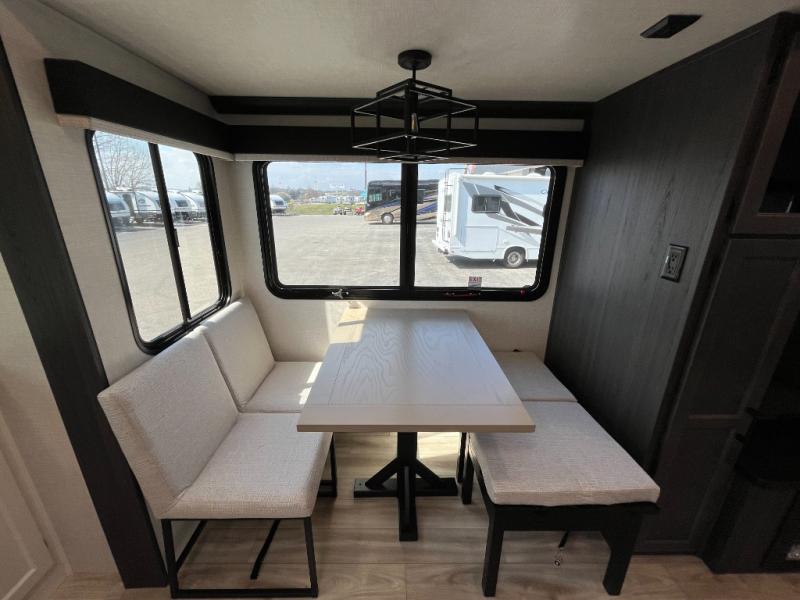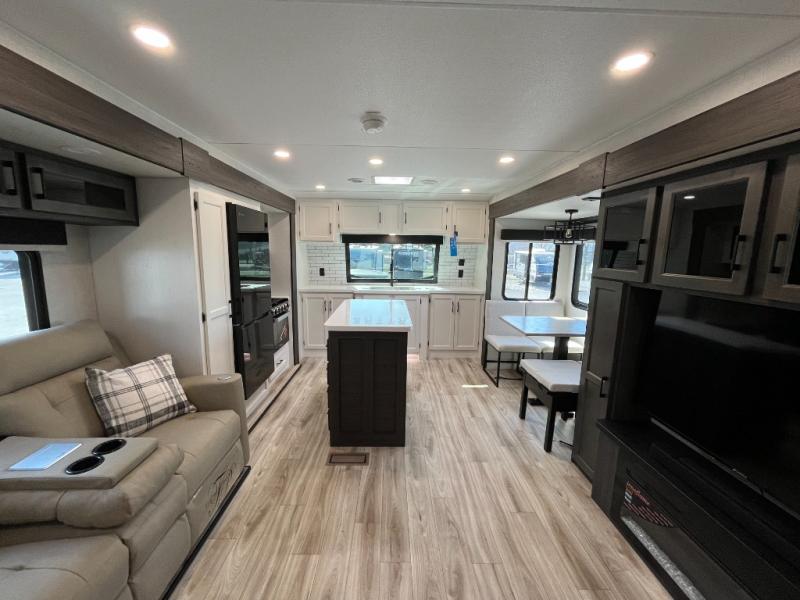 Step inside and you’ll immediately notice the bright, open interior anchored by a front kitchen layout that delivers generous counter space, abundant storage, and intuitive design for easy meal prep. The living area features comfortable seating and fun touches like theater seating, creating a place where everyone can relax after a day of exploring. A dedicated dining space provides room for meals, games, and quality family time.