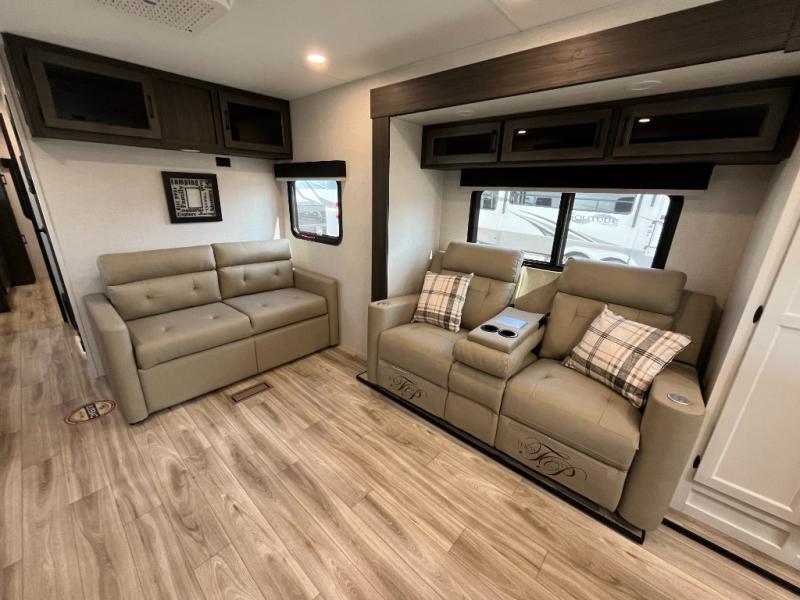 Front Kitchen • Dual A/C • Outdoor Kitchen • Power Awning • Theater Seating