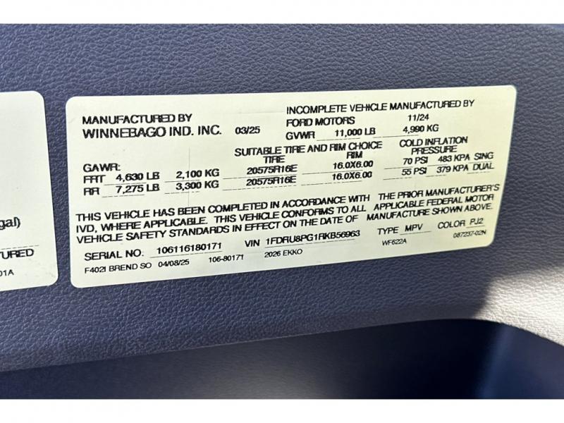 New 2026 Winnebago EKKO 22A Motor Home Class B+