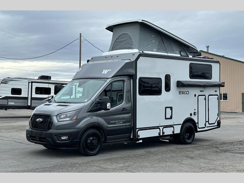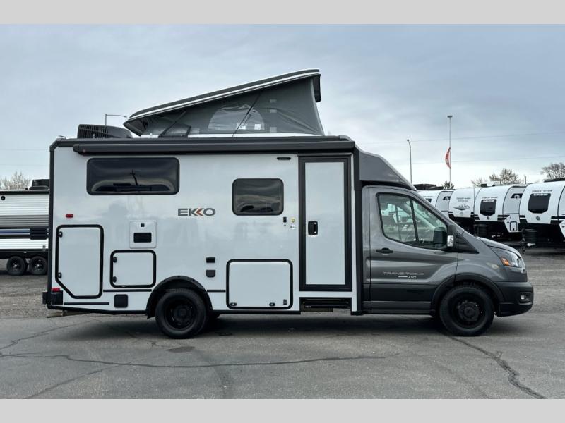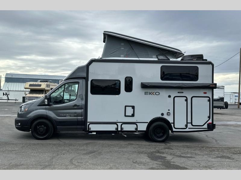 With the efficiency of a camper van, the capacity of a Class C coach, and the enhanced capability of AWD, the Winnebago EKKO Class C gas motorhome is ready to change the way you travel! You will be ready for all sorts of weather with the insulated water service center and heated holding tank compartment, and you will also be ready to camp just about anywhere with the three solar panels and a 2,800-watt gas generator. The heated gear garage has an L-track cargo tie-down system, and the RAM Tough-Track mount is an innovative way to mount a variety of different devices. The EKKO also has some very accommodating features that are included in its list of options, like the optional batwing awning, pop-top sleeping area with FROLI sleep system, luggage rack, and exterior kitchen.
