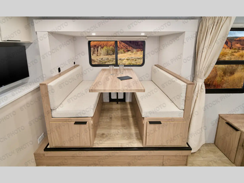 If you're looking for versatility, then you need this travel trailer! Depending on the time of day you enter will determine whether you see the Murphy bed or the sofa up front. A slide out 44" x 72" booth dinette can be used for dining, playing games, and sleeping space at night. The full rear bathroom is equipped with everything you will need to freshen up each morning and features a wardrobe for your clothing and linens, and a pocket door into the bath saves space in the main room. The Smart TV is conveniently located so you can watch your favorite shows from the sofa or Murphy bed as well as the dinette, plus the pantry offers a place to store your snacks and such for easy access. The cook in your bunch will love all the amenities to make meals including the handy flip-up counter for more prep space.