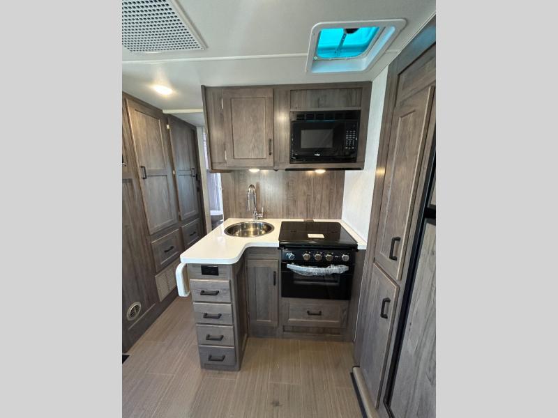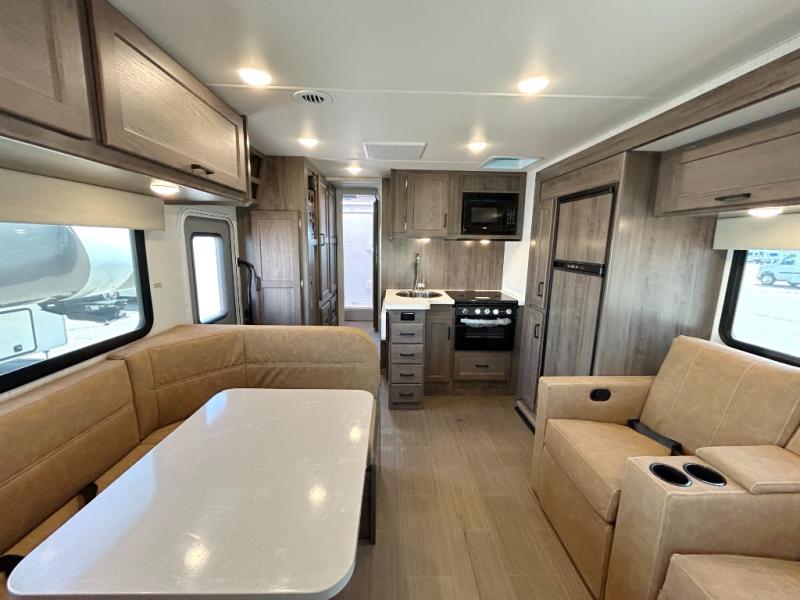Explore the beautiful national parks with the Minnie Winnie NPF Limited Edition Class A gas motorhome by Winnebago. The compact build is designed to fit most park campsites, and you're sure to turn heads with the exclusive National Park themed deluxe exterior graphics. You will also appreciate the large lighted trunk storage compartment for your camp gear, a powered awning with LED lighting, plus 240-watts of solar power for off-grid capabilities. You can stay connected wherever you roam with the radio/review monitor system that includes a 10" multi-function touchscreen monitor and rear camera, Bluetooth, and more! There is space for everyone inside to relax in comfort, including sleeping for six, and the galley kitchen will let you create your best home-cooked meals. This coach also includes vinyl flooring throughout, Corian solid surface countertops, plus a flexible showerhead and a bath skylight to name a few comforts!