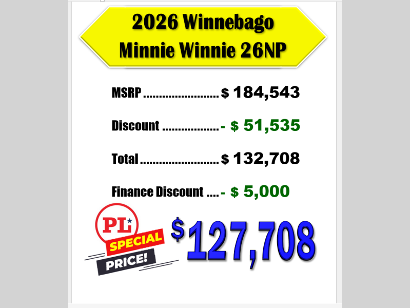 New 2026 Winnebago Minnie Winnie NPF Limited Edition 26NP Motor Home Class C