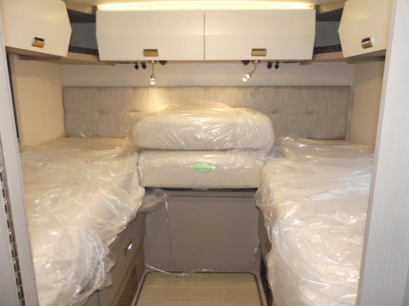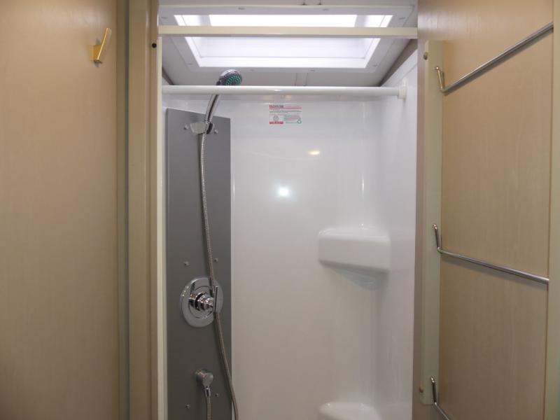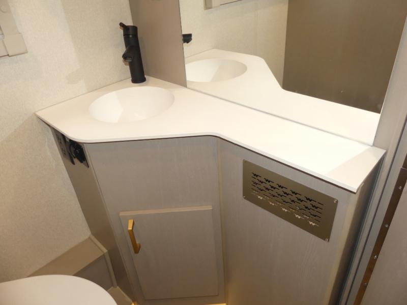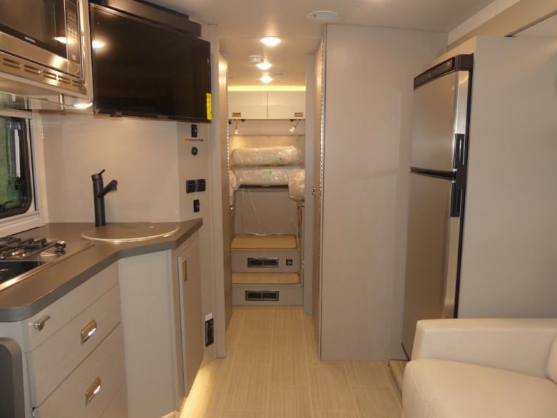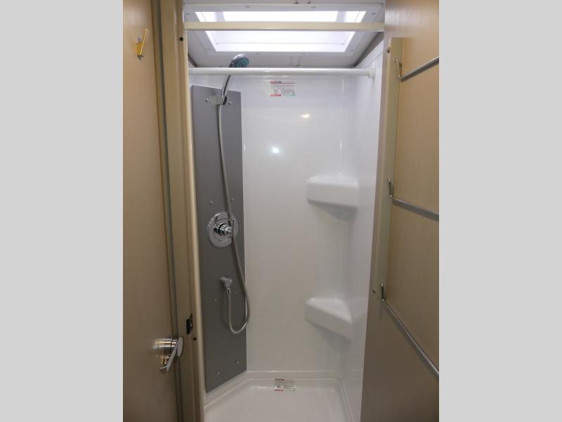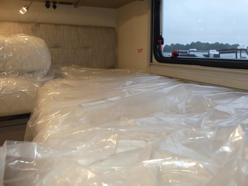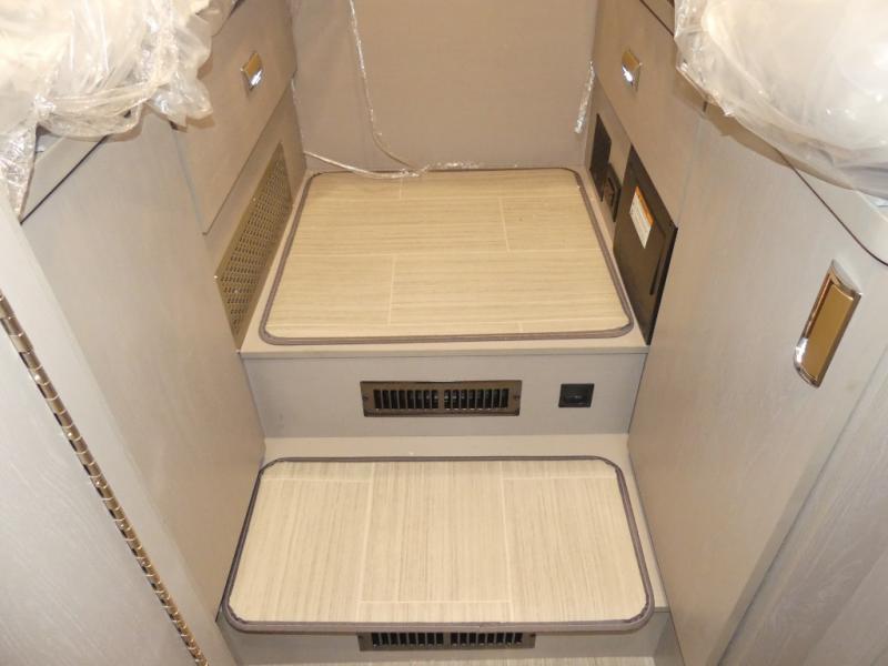 This is the perfect coach to travel with your honey or hiking buddy since there are two 32" x 76" twin beds in the back that can convert to a king-size bed if you choose! And the TrueComfort+ sofa with a movable pedestal table plus the cabover bunk will provide additional sleeping space. You can choose the optional low profile front cap with storage if you do not need the added sleeping space. An optional 3800W RVMP LP generator is also available with this model. There is a 25" x 30" shower across the hall from a private toilet and sink so two people can freshen up at once. You will also be able to create meals each day since there is a two burner cooktop and convection microwave, and the 12V refrigerator will keep cold items fresh!