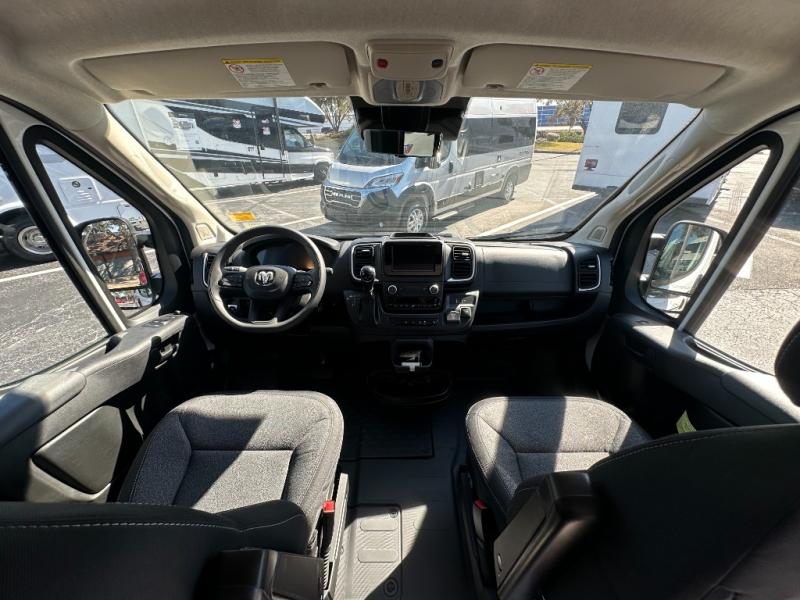 Each Solis Class B gas motorhome by Winnebago sits upon a fuel-efficient Ram ProMaster chassis with a 3.6L V6 engine to power your adventures. You will love the cab conveniences that make each trip enjoyable, like the radio/review monitor system touchscreen and the crosswind assist to keep you steady on the road. Some of the hassle-free amenities you will appreciate are the exterior wash station, the Eco-Hot water system, and the water center control panel located inside the right rear door. Head indoors to find heavy-duty vinyl flooring throughout, a laminate countertop and a stainless steel sink in the galley, plus tinted coach windows for added privacy. The Solis also features off-grid capabilities with its two deep-cycle Group 31 batteries and 220-watt flexible surface solar panel with a controller. Adventures awaits in the Solis Class B gas motorhome!
