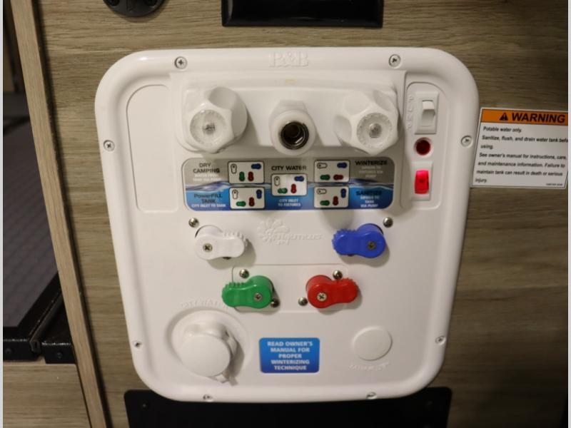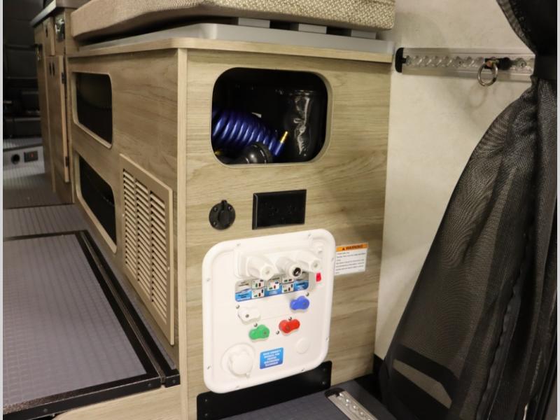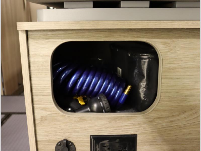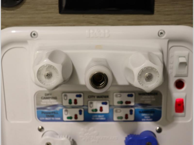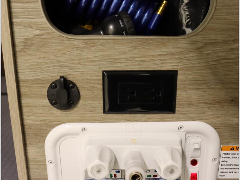 10. An exterior water fill is provided, removing the need to have the rear van doors open or pinching an existing hose, yet can be valved off in cold weather use