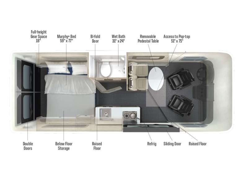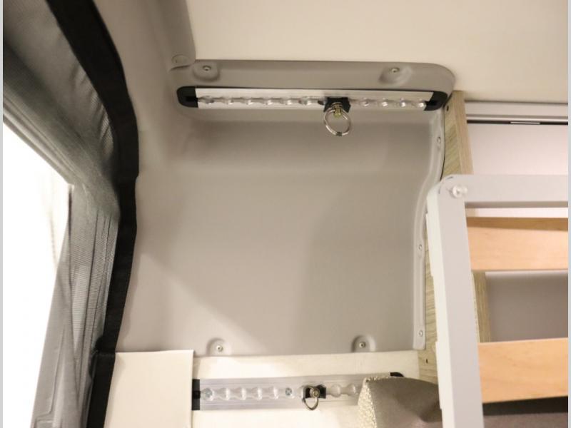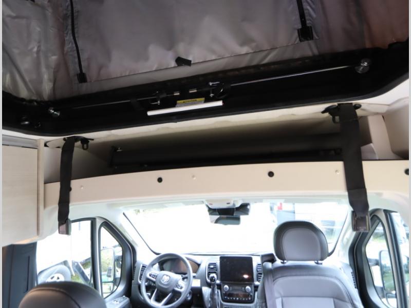 The popular Solis is available with or without the overhead pop top studio loft sleeping surface that includes the Froli deluxe sleep system! Plus you can increase sleeping now with the Luno front cab air mattress for a 30 x 65 in additional sleeping surface.