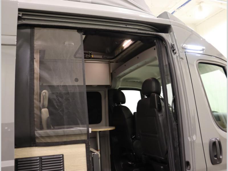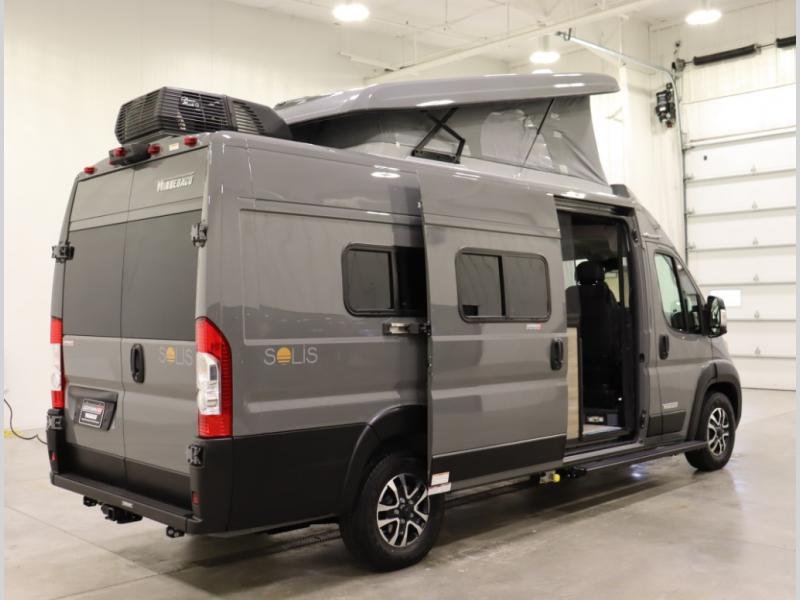 Built on the fuel efficient Ram Promaster chassis, the Solis features all season insulation and plumbing, a space extending rear annex and Truma Combi Eco hydronic heating and on demand hot water with hot water loop purge. In addition to the cross coach sleeping below, the fiberglass studio loft pop top easily expands your sleeping space, offers panoramic views and provides a restful night's sleep with the innovative FROLI sleep system.